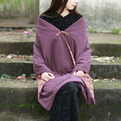 Этнический длинный ретро флисовый плащ, этнический стиль, средней длины, увеличенная толщина