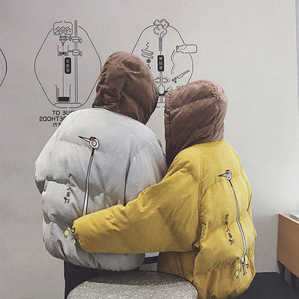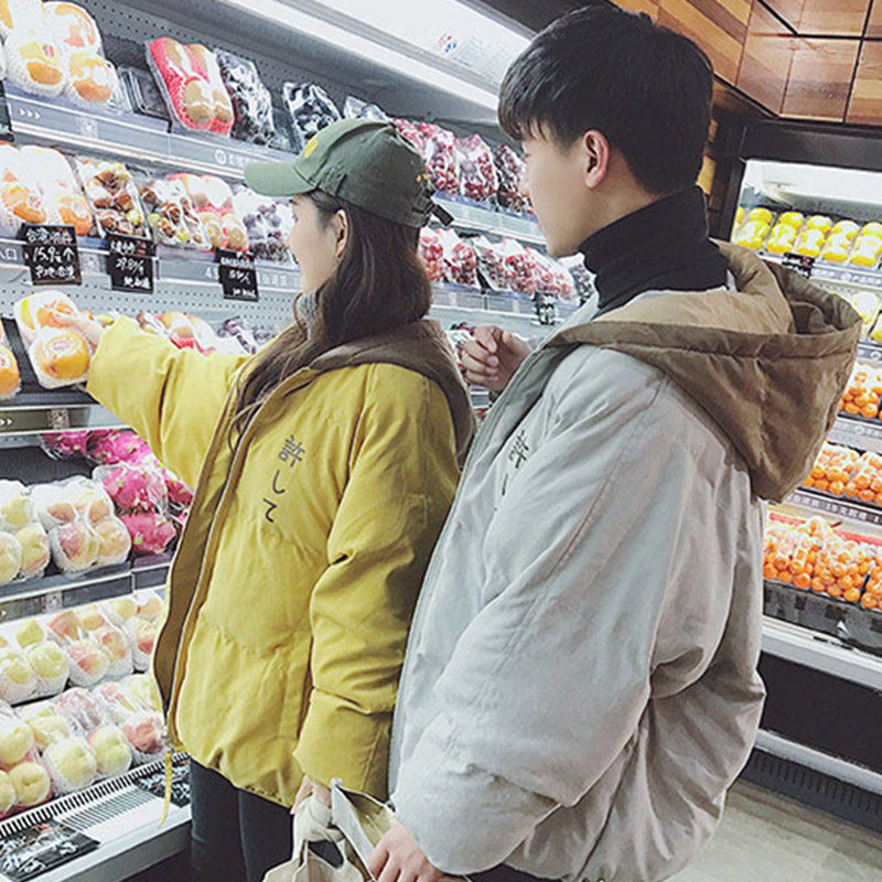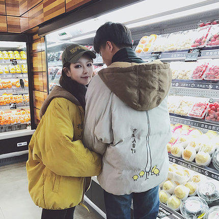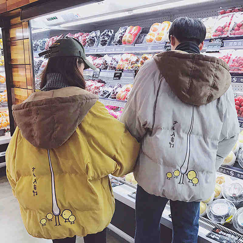 Куртка, зимний пуховик с пухом для влюбленных для школьников, 2019, в корейском стиле, оверсайз