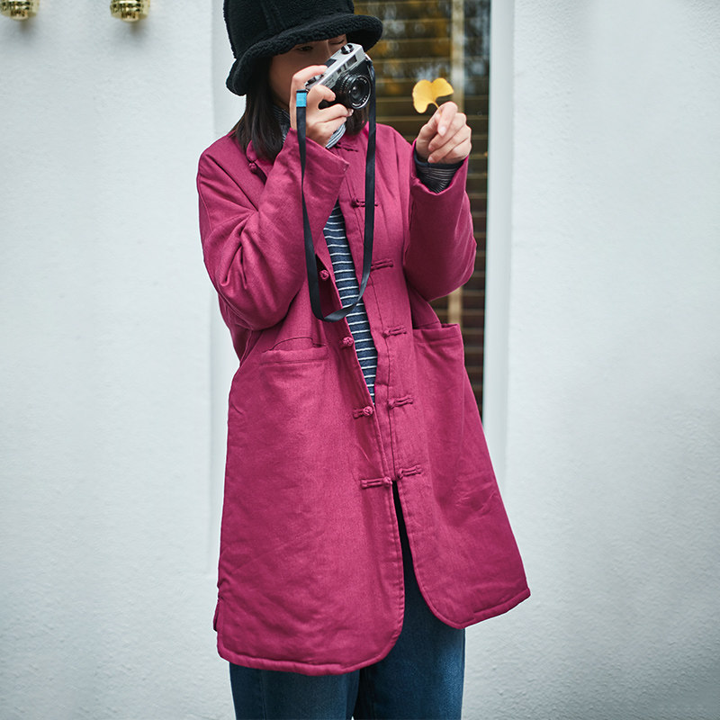 Осеннее хлопковое пальто, женская средняя сумка для шпильки, стиль Чжан Синь, ожерелье Чжу Хонга, а другая называется хлопком, а другой называется хлопком, а другой трудно использовать.