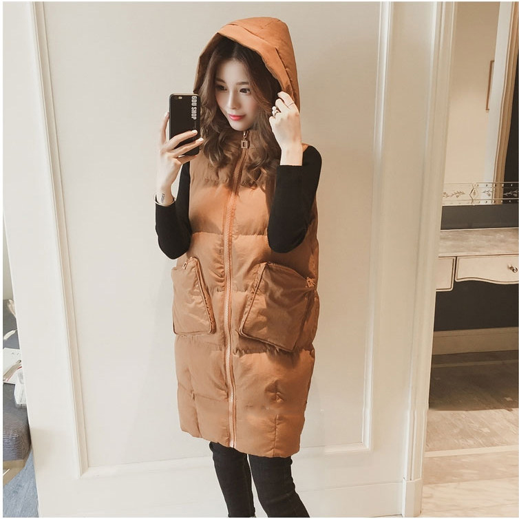 Пуховик с пухом, длинный демисезонный жилет, куртка без рукавов, в корейском стиле, большой размер, увеличенная толщина