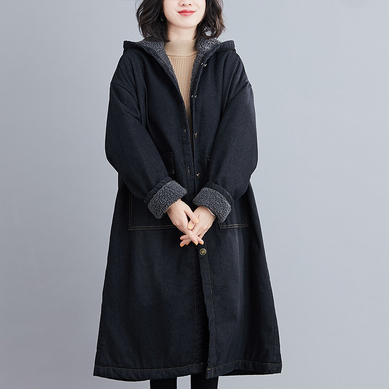 Демисезонная джинсовая утепленная длинная куртка для отдыха, большой размер, оверсайз, средней длины