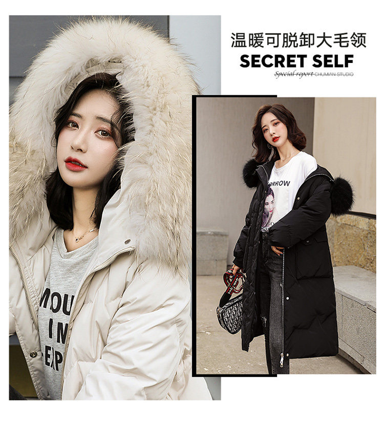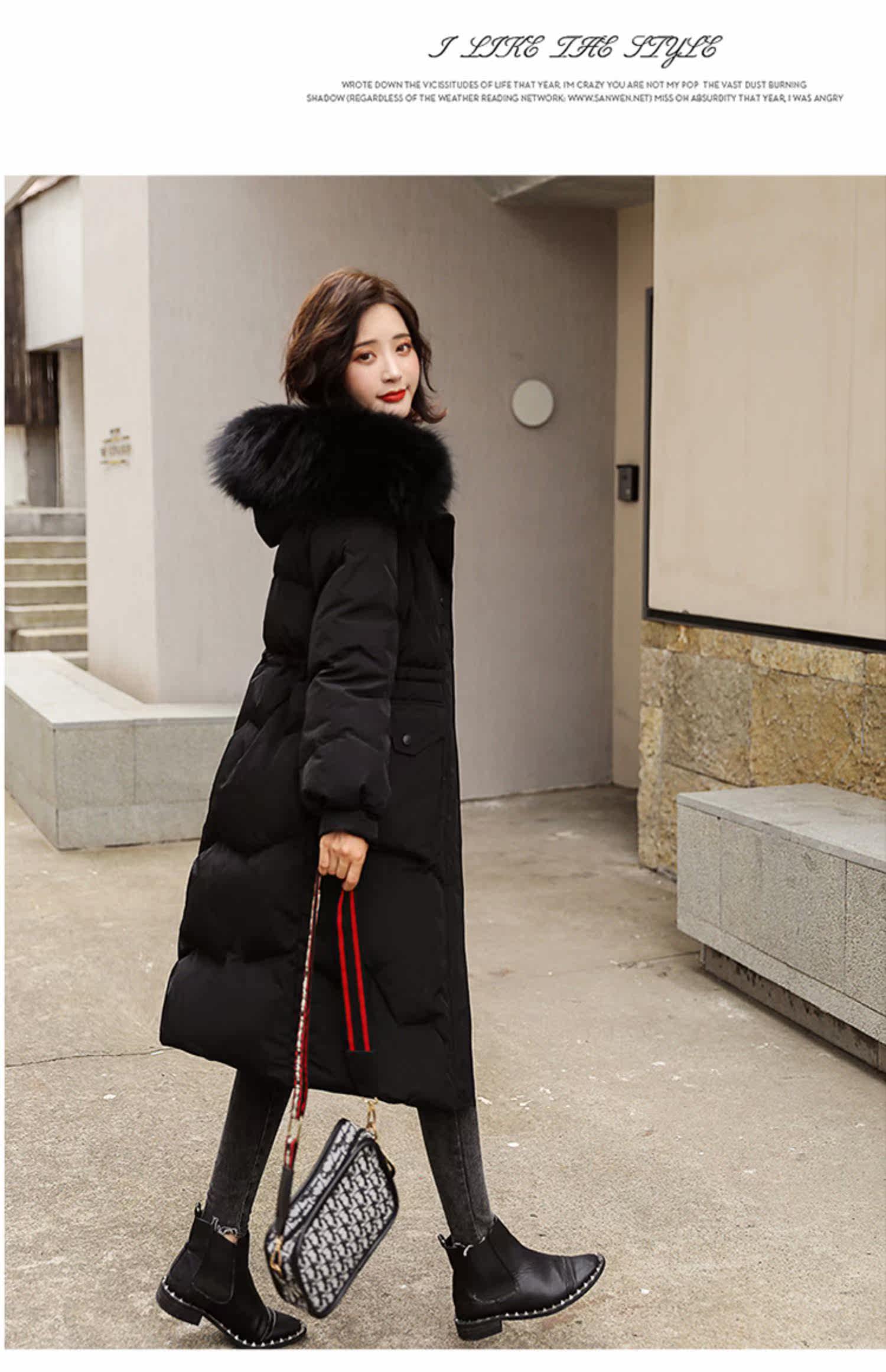 Длинный пуховик с пухом, черная куртка, средней длины, 2020, в корейском стиле, по фигуре