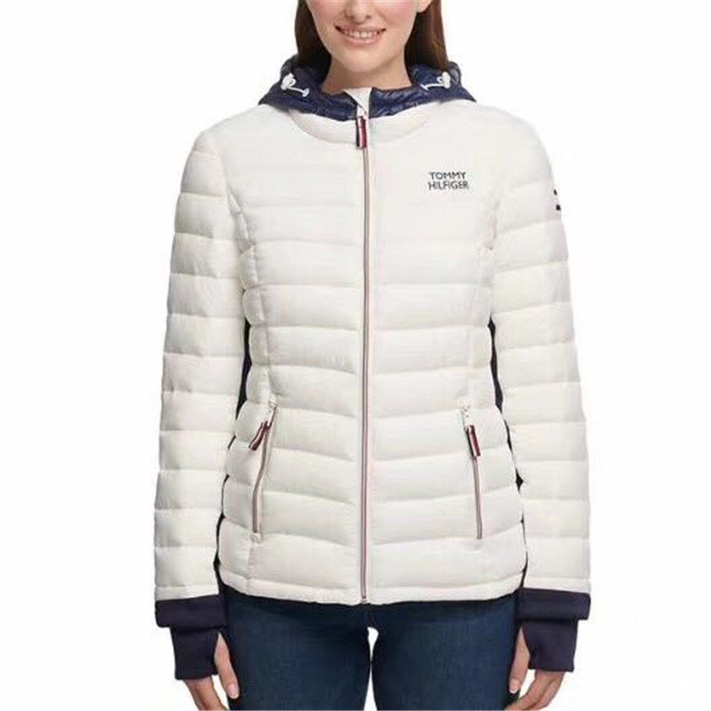 Tommy hilfiger, удерживающий тепло короткий демисезонный пуховик с капюшоном с молнией, США
