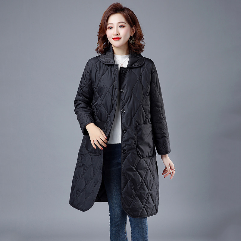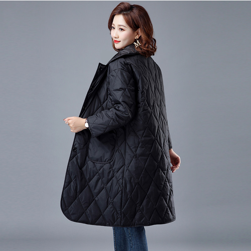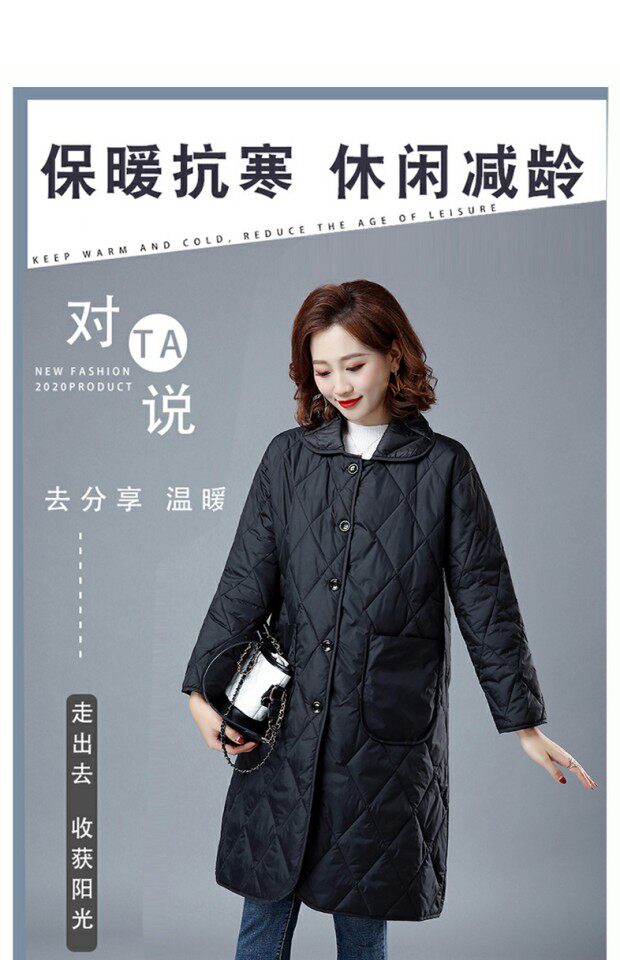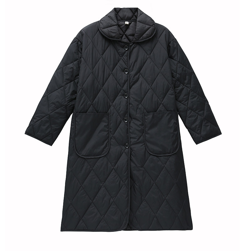 Легкий и тонкий зимний пуховик с пухом, длинный лонгслив с ромбовидным узором, куртка, коллекция 2021, в корейском стиле, средней длины