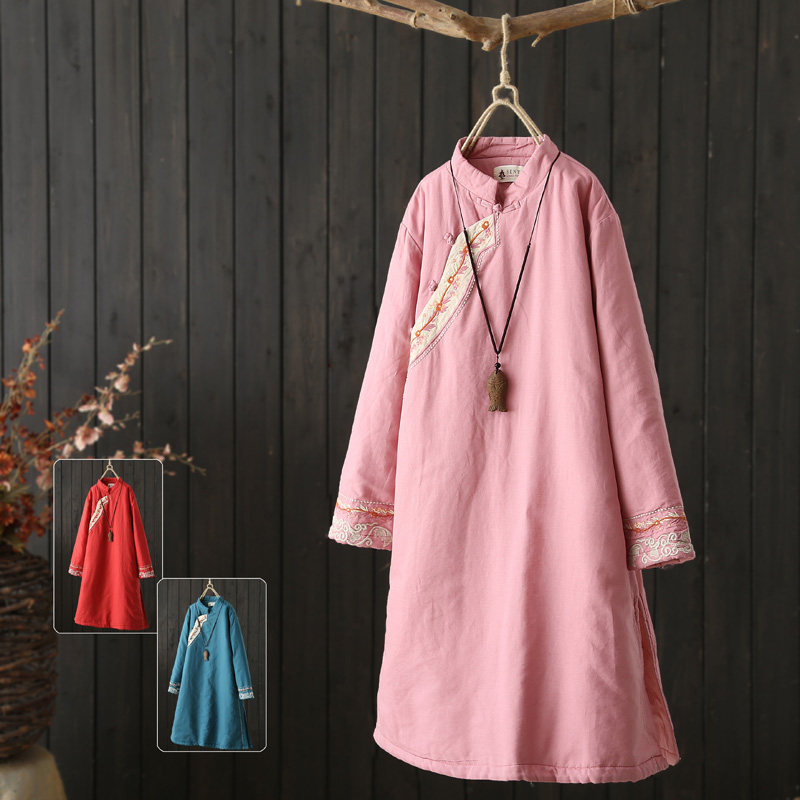 Оригинальное ретро стеганое платье, длинный пуховик, средней длины, китайский стиль