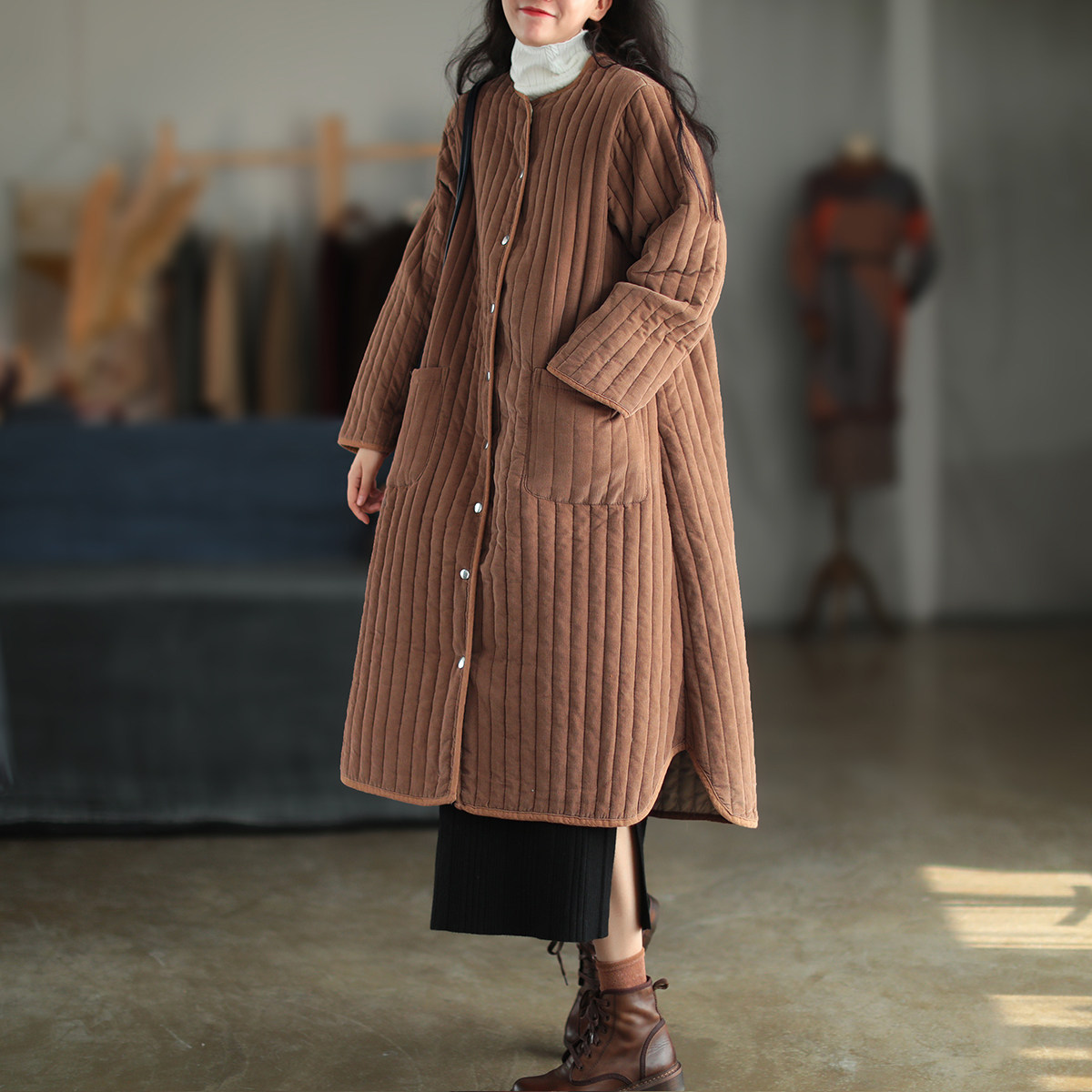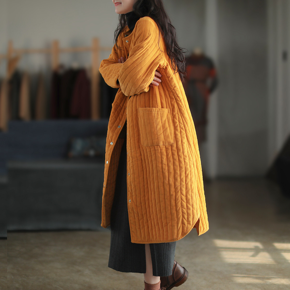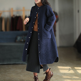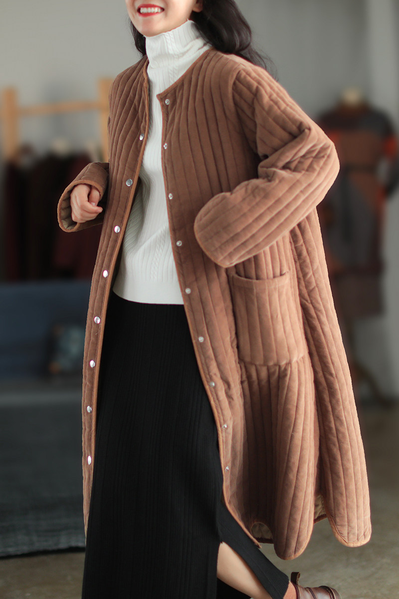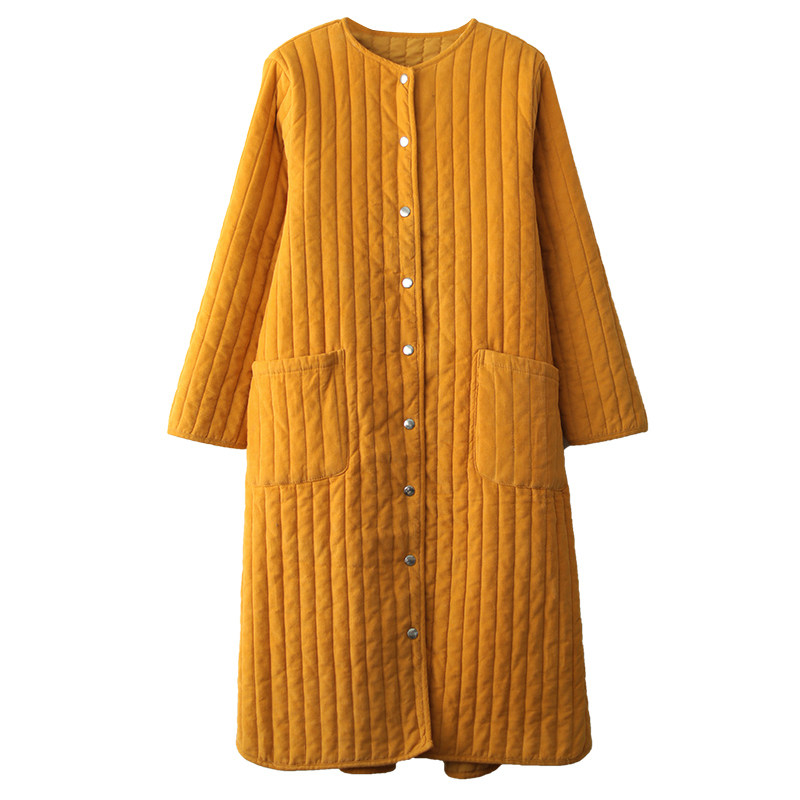 Вельветовая длинная зимняя ретро куртка, пуховик с круглым воротником, средней длины, свободный крой