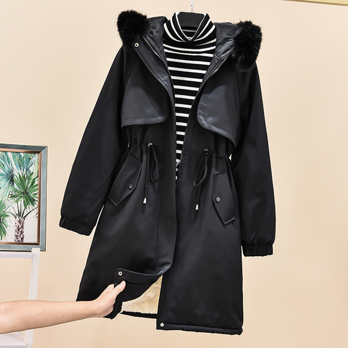 Длинный утепленный приталенный корсет, плащ, средней длины, 2020, в корейском стиле