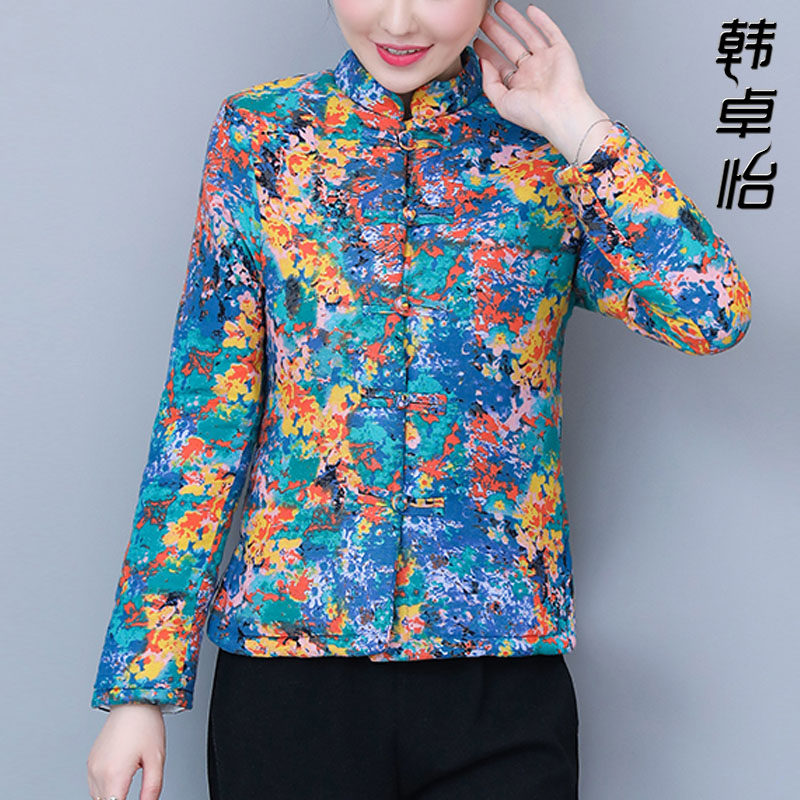 Ретро этнический пуховик, удерживающая тепло куртка для матери, 2020 года, этнический стиль, для среднего возраста