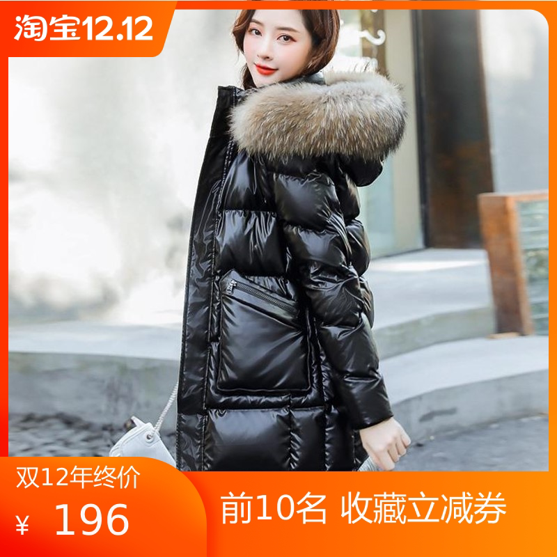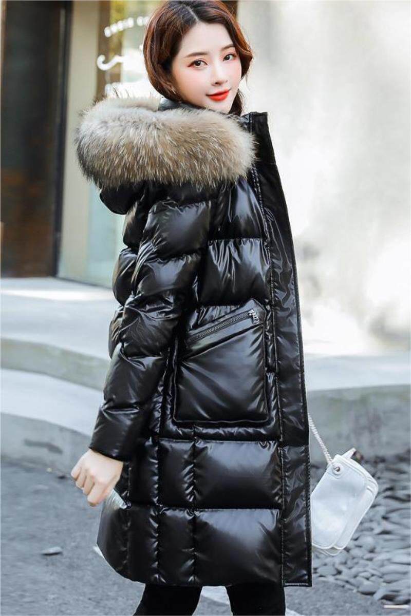 Глянцевый длинный пуховик с пухом, зимняя утепленная куртка с молнией, средней длины, 2020, свободный крой