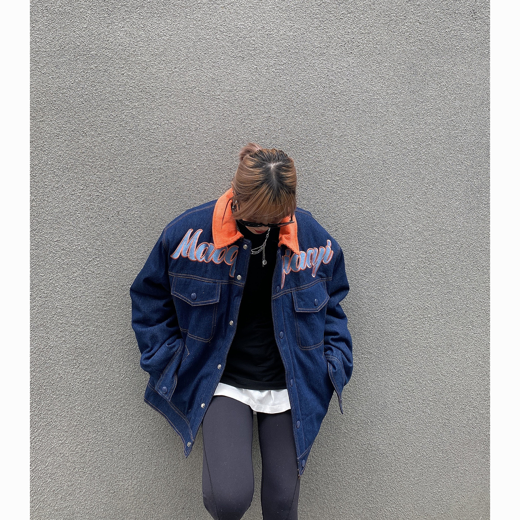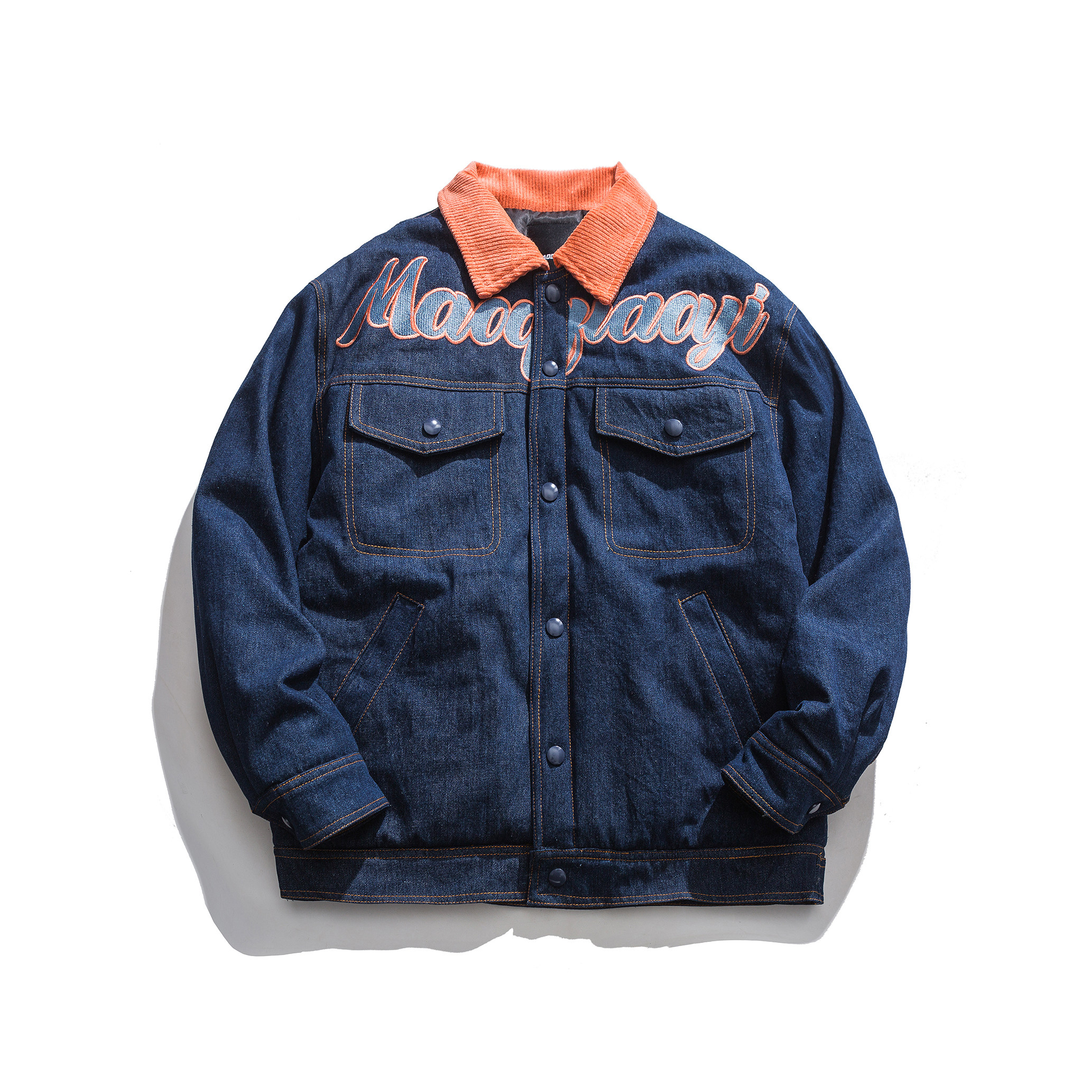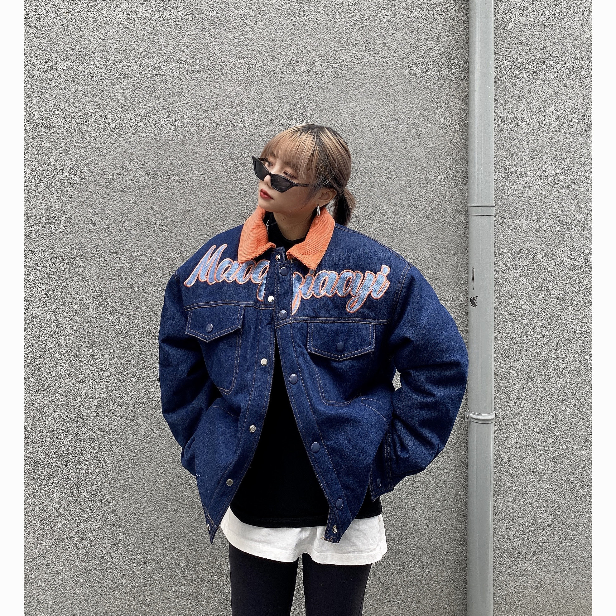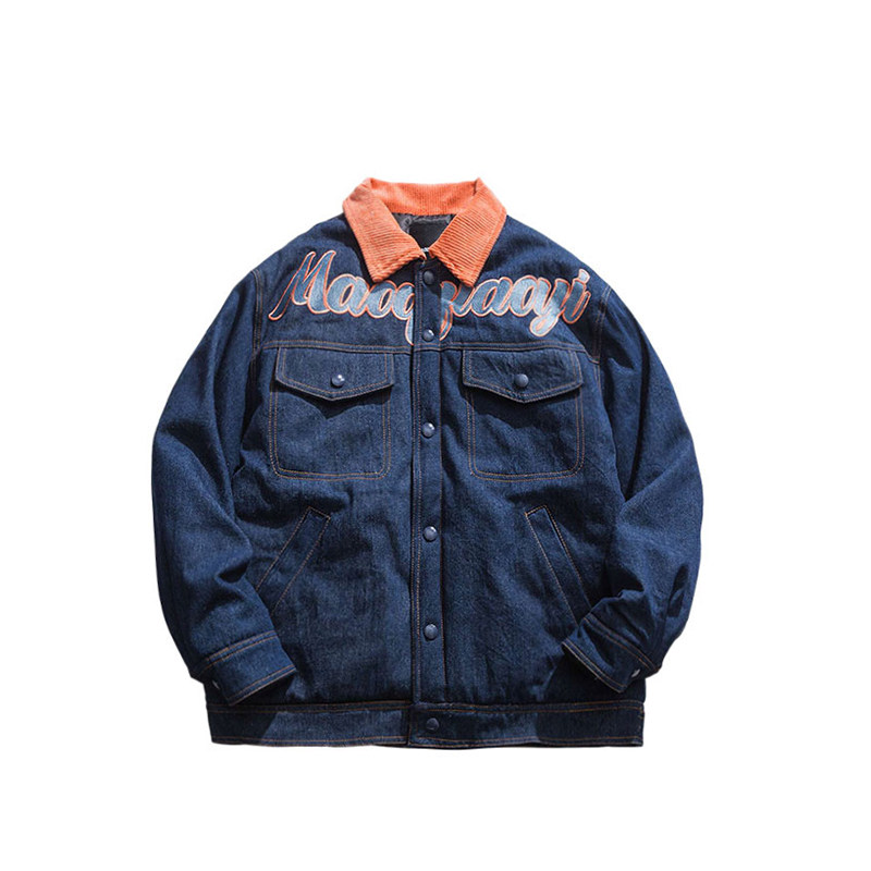 Зимние ретро джинсы с начесом, дизайнерский пуховик, куртка, оверсайз, тренд сезона, с вышивкой