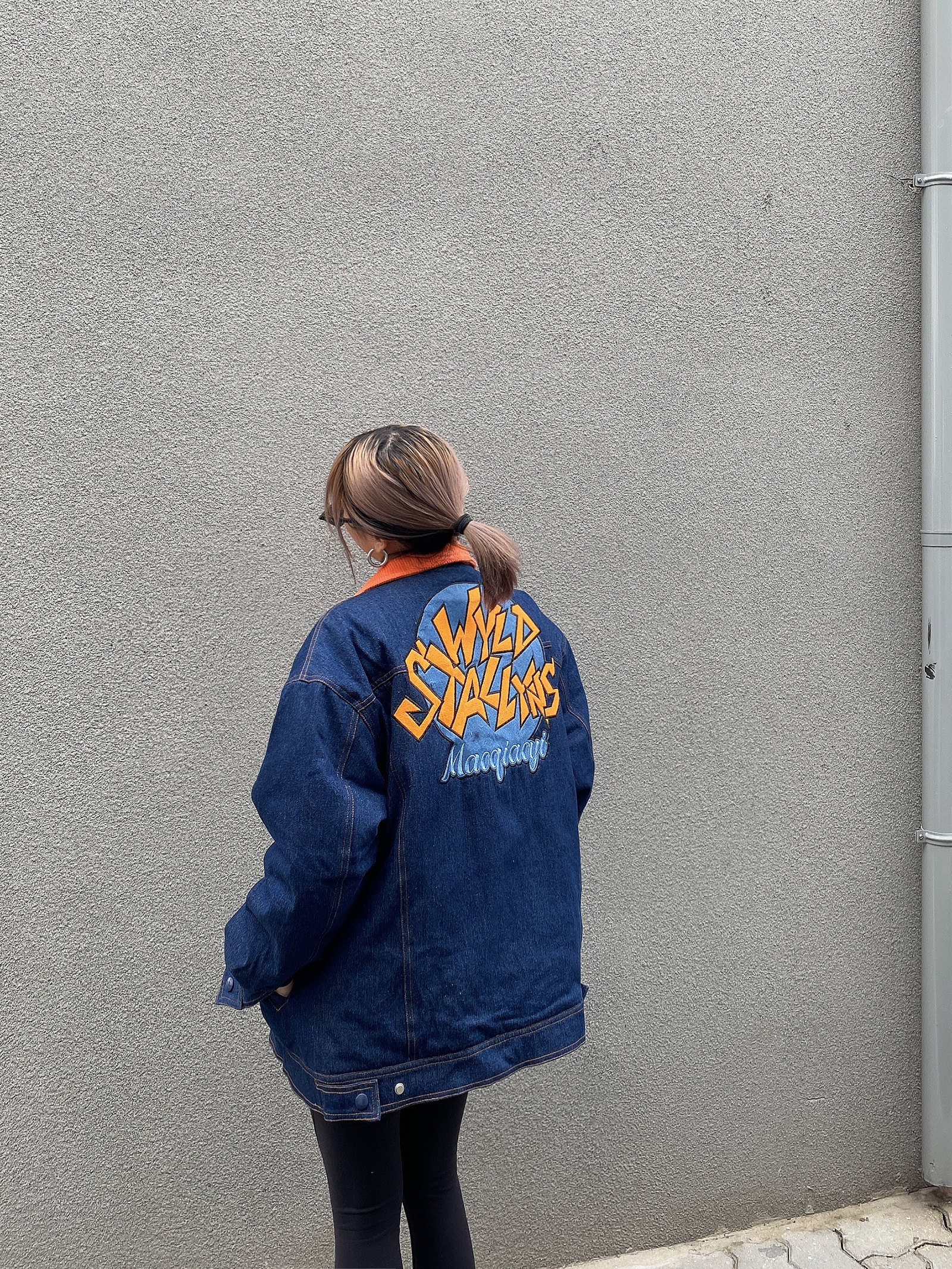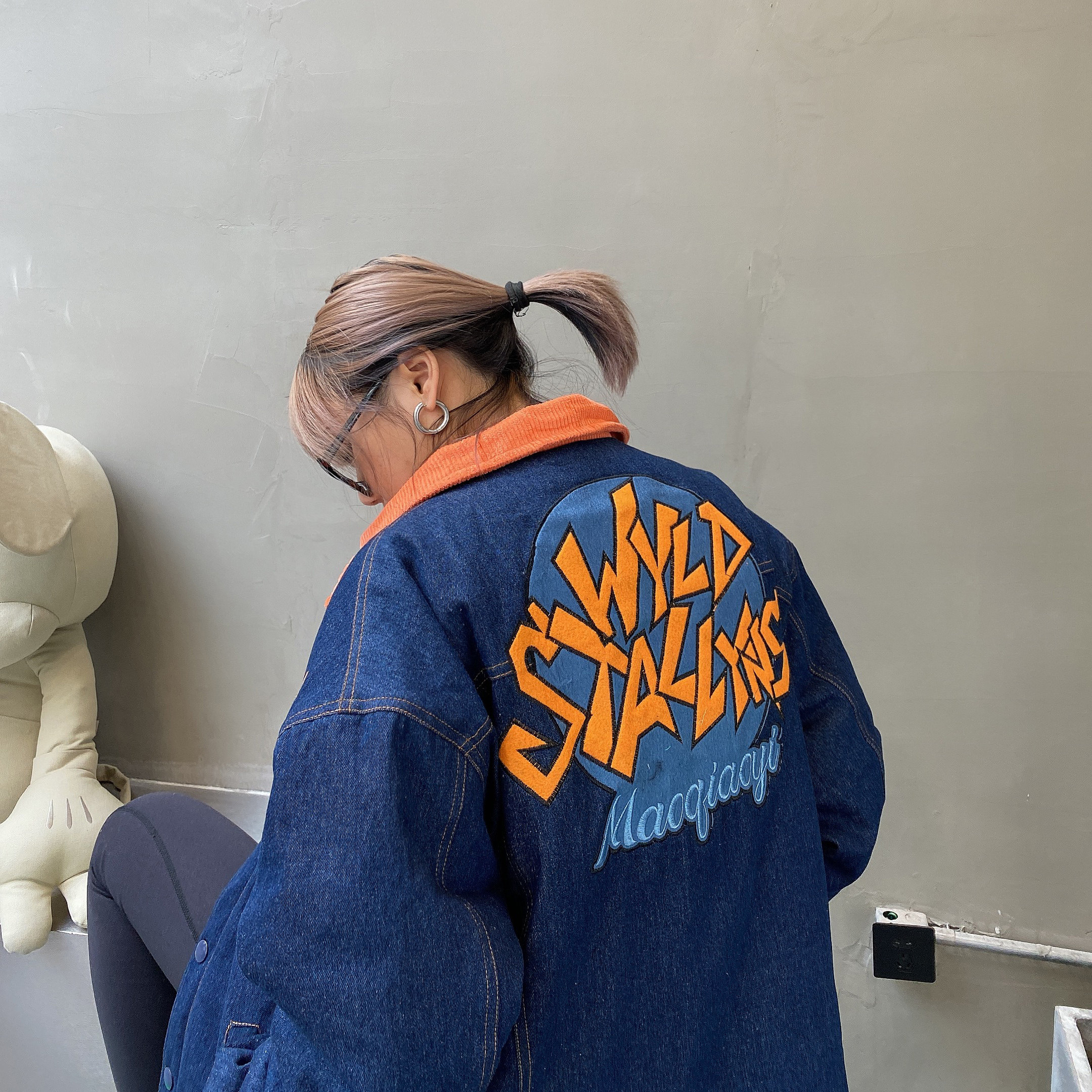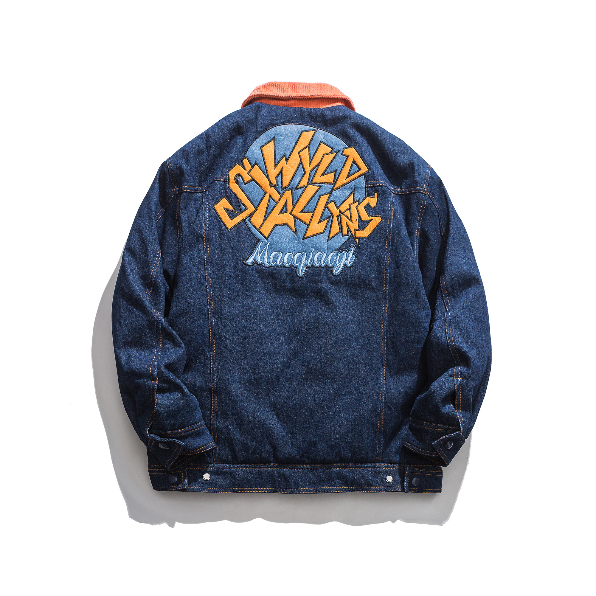 Зимние ретро джинсы с начесом, дизайнерский пуховик, куртка, оверсайз, тренд сезона, с вышивкой