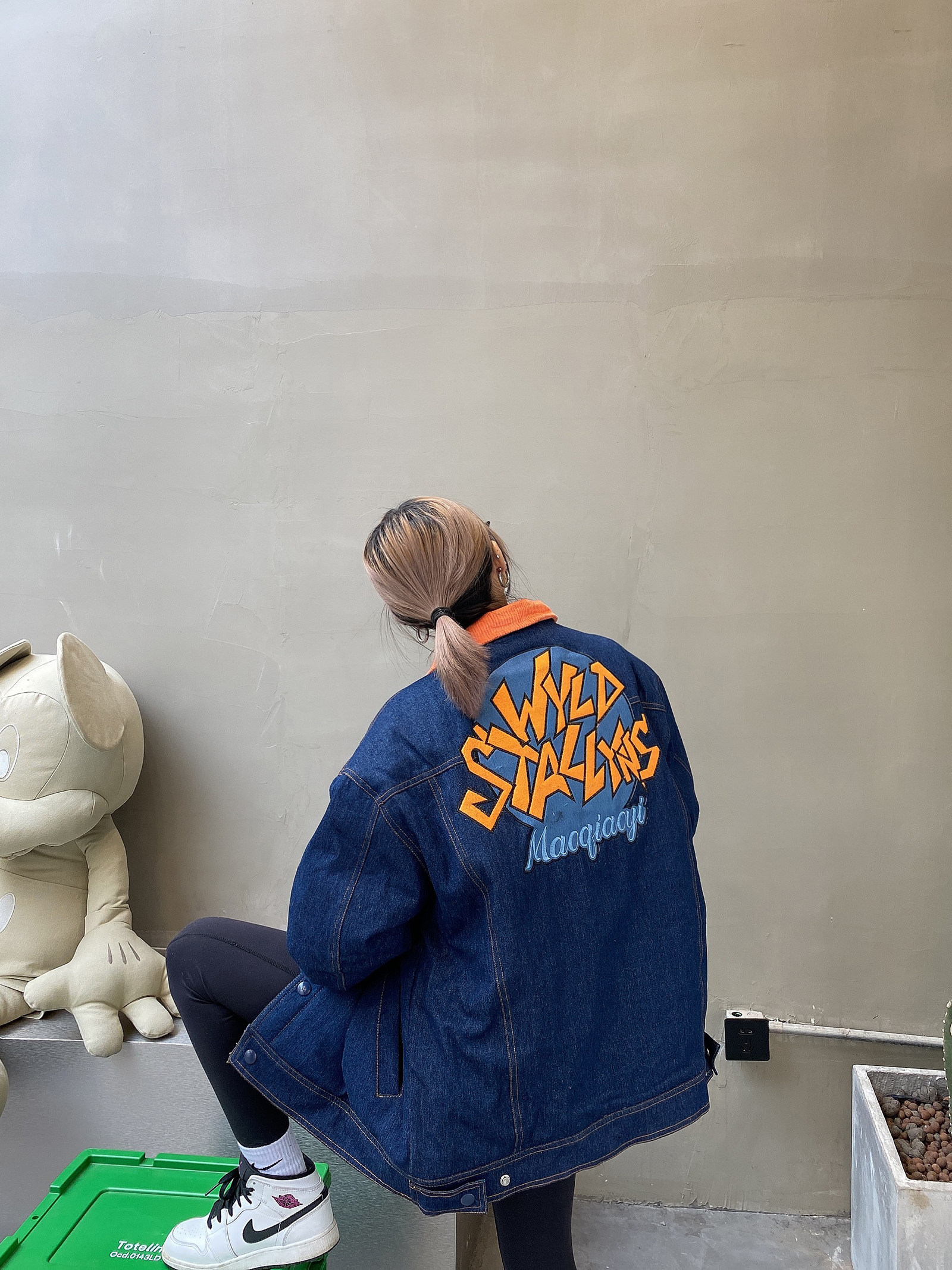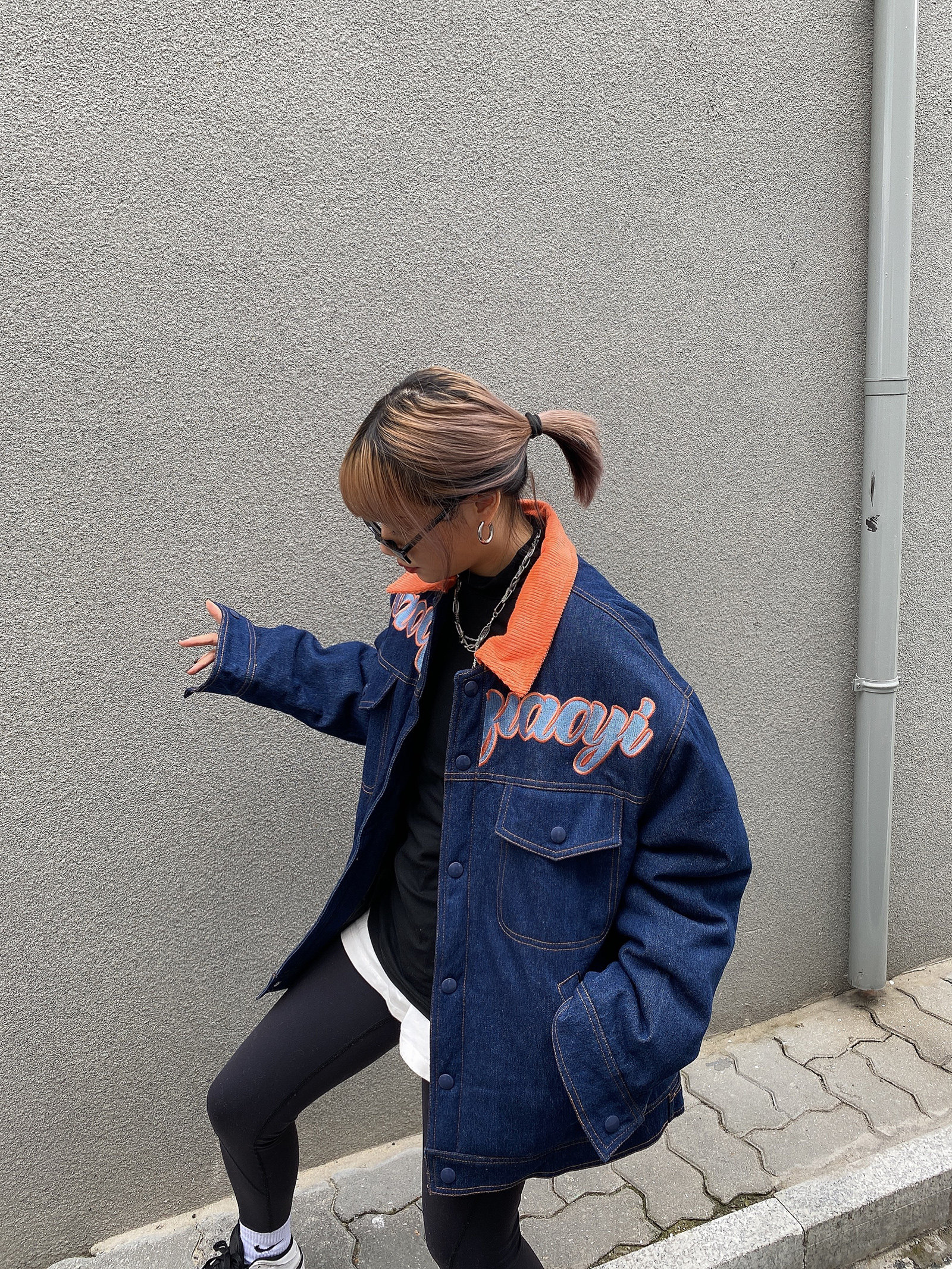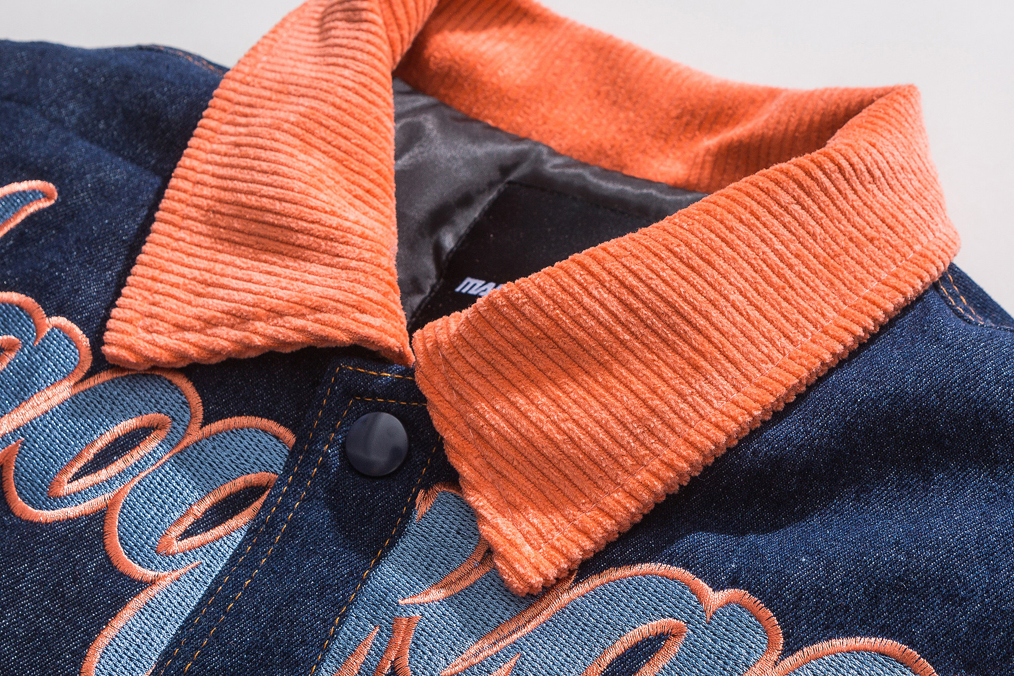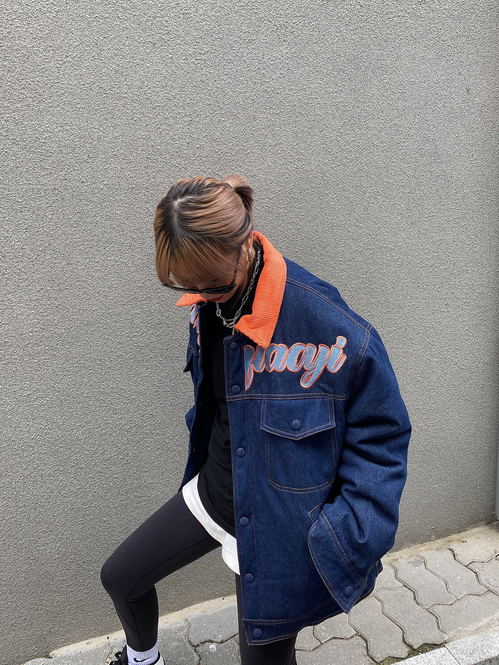 Зимние ретро джинсы с начесом, дизайнерский пуховик, куртка, оверсайз, тренд сезона, с вышивкой