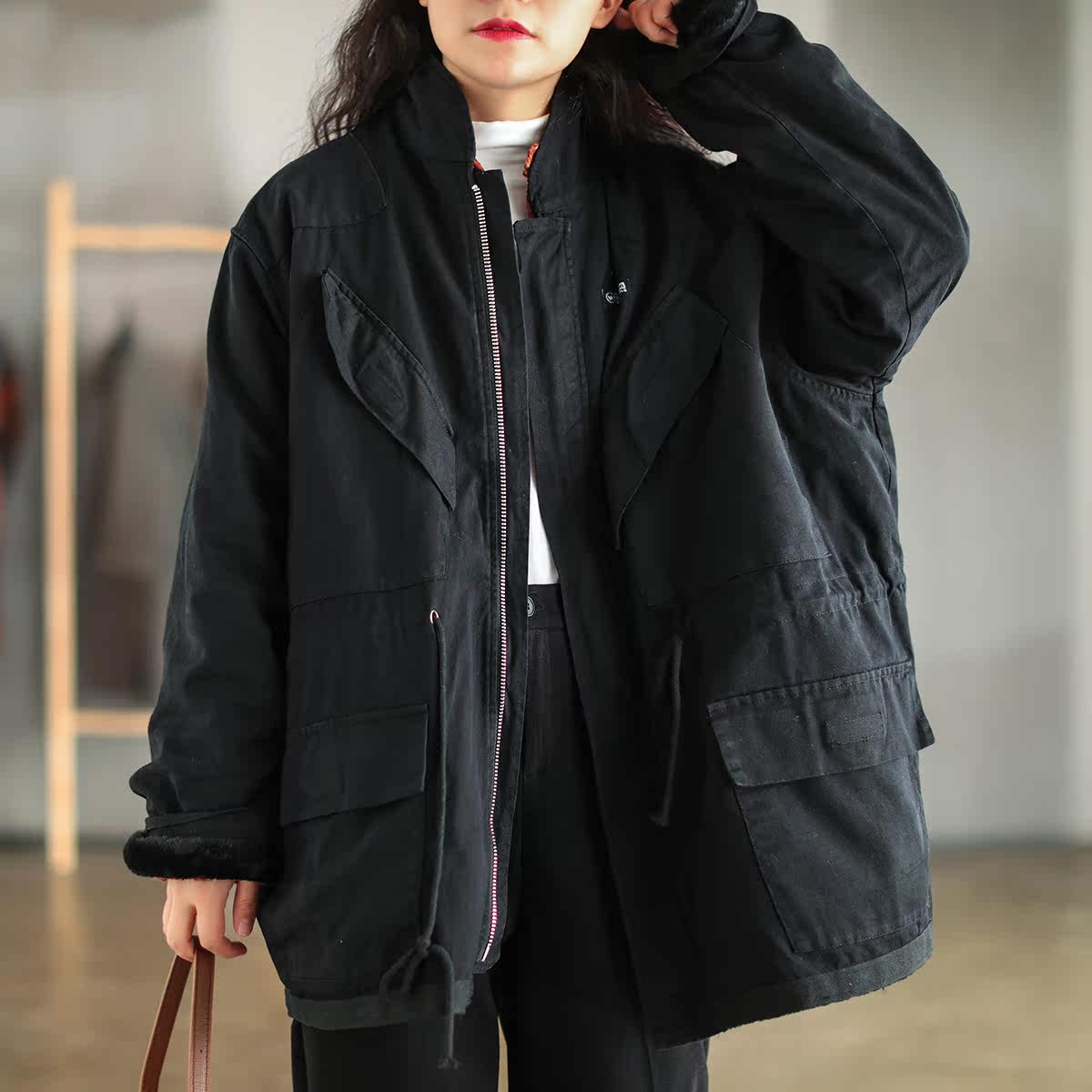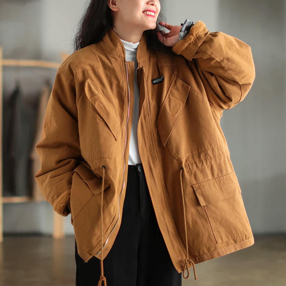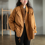 Хлопковый флисовый зимний ретро пуховик, куртка