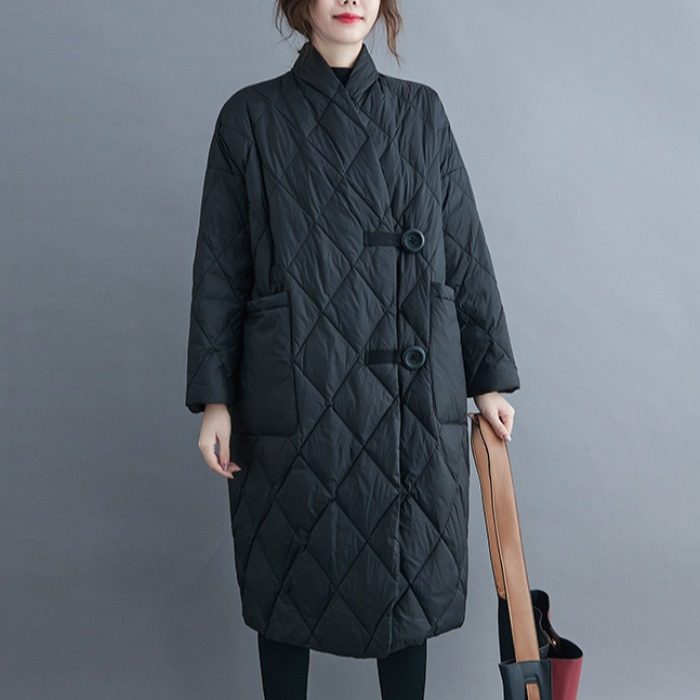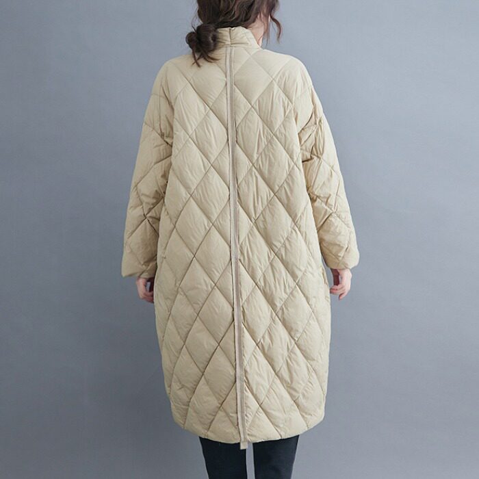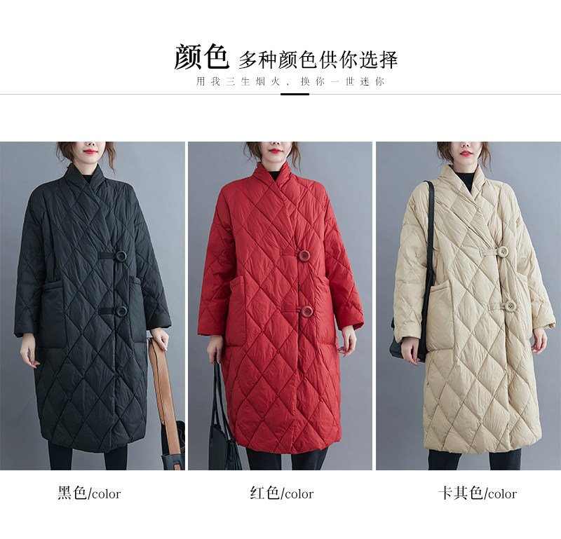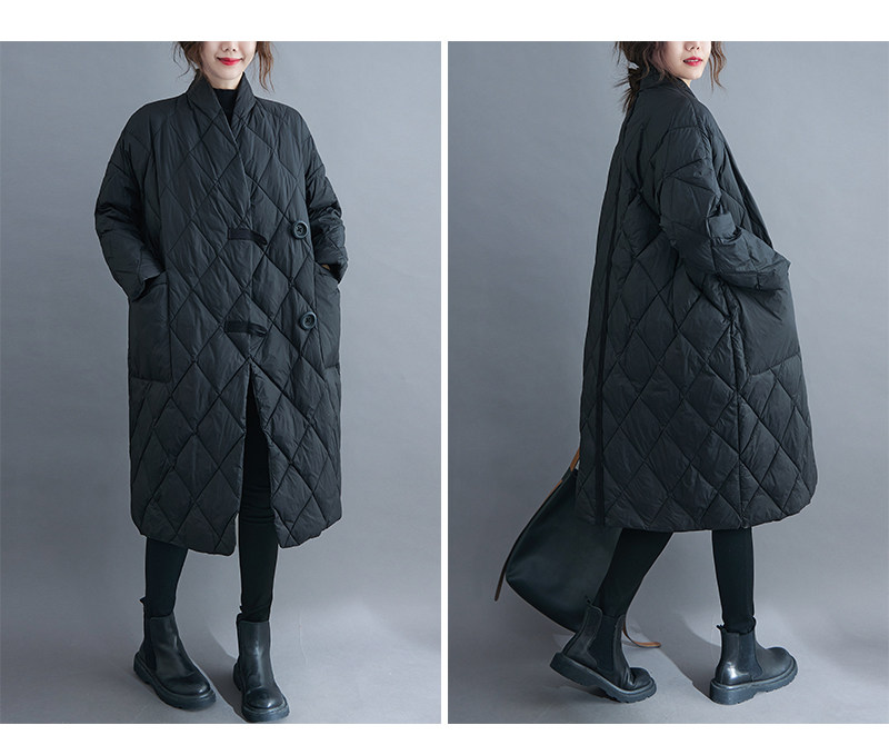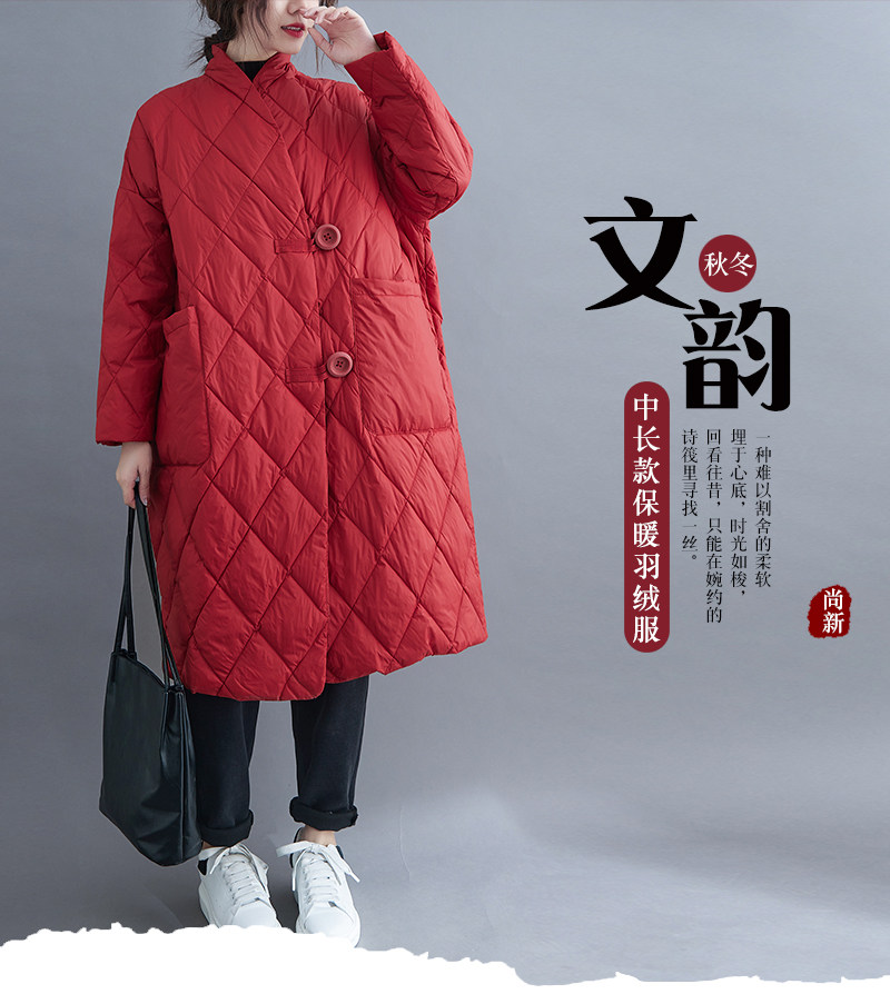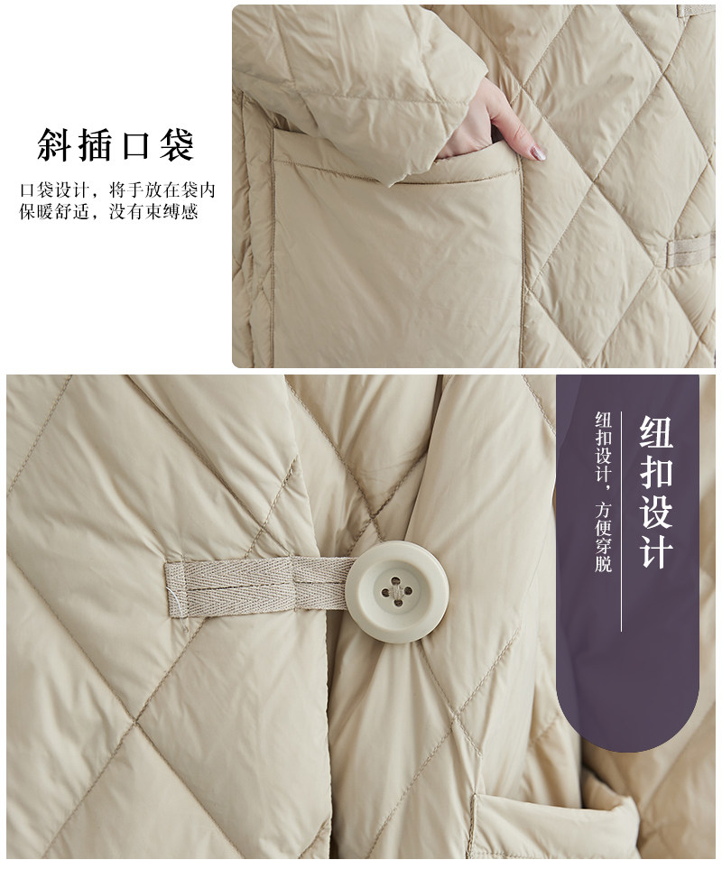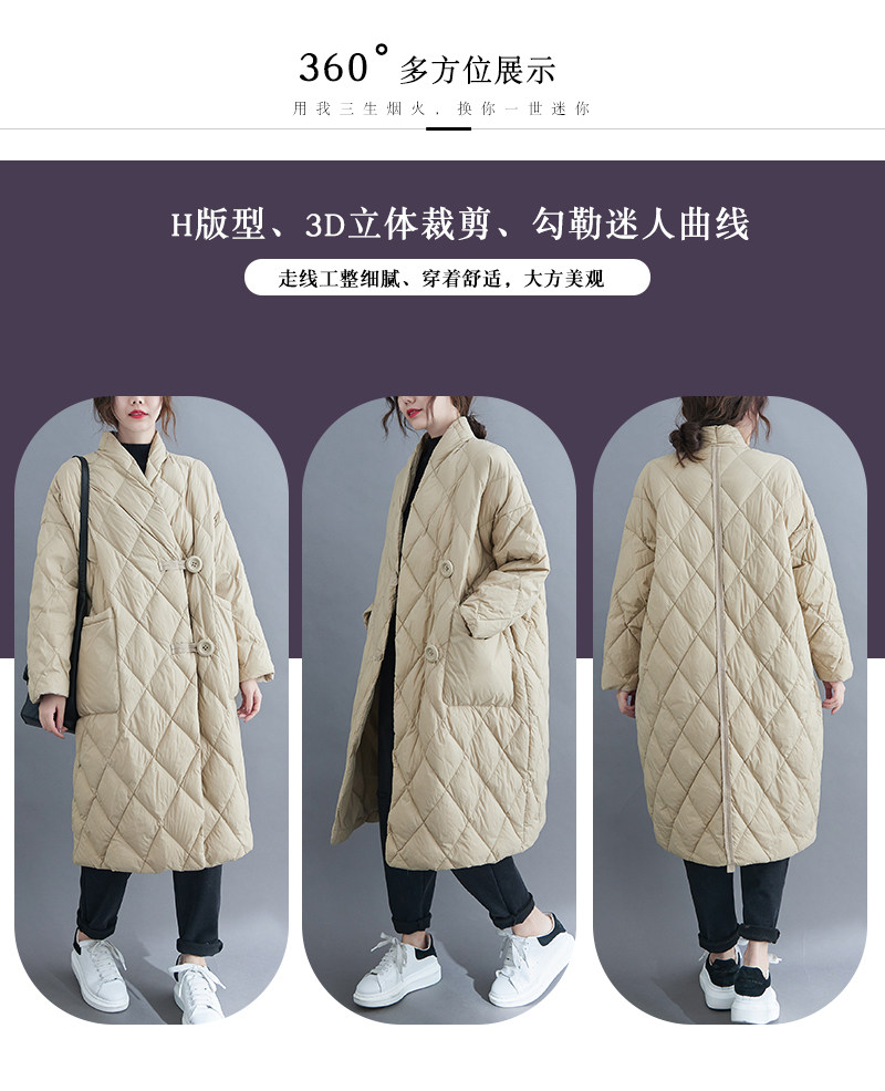 Длинный пуховик с ромбовидным узором, легкая и тонкая куртка с пухом, большой размер, V-образный вырез, средней длины