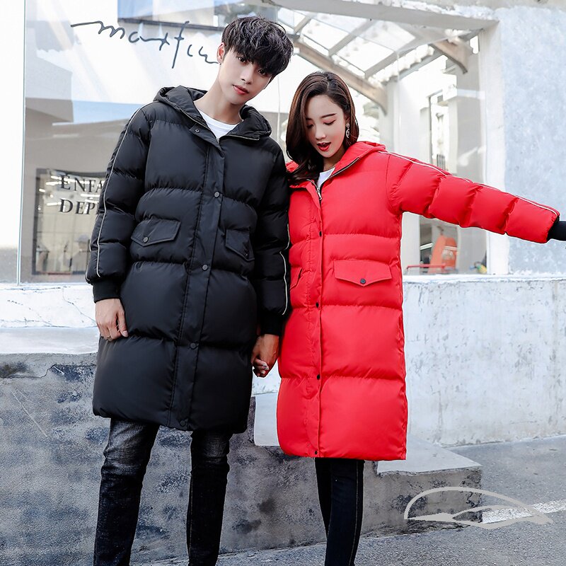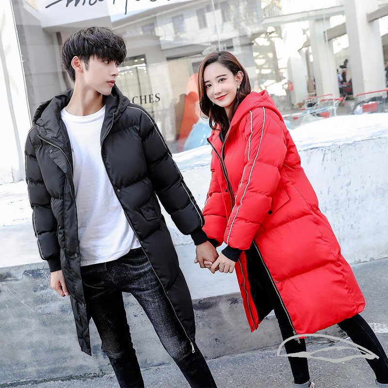 Длинная демисезонная куртка, удерживающая тепло парная одежда, трендовый пуховик, средней длины, для влюбленных, большой размер