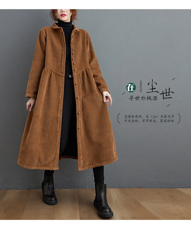 Ретро вельветовая длинная куртка, утепленное пальто, длина макси, оверсайз, яркий броский стиль