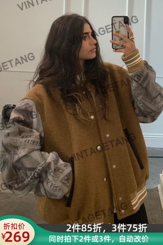 Ретро бейсбольная форма, пуховик, стеганая куртка, в американском стиле, увеличенная толщина