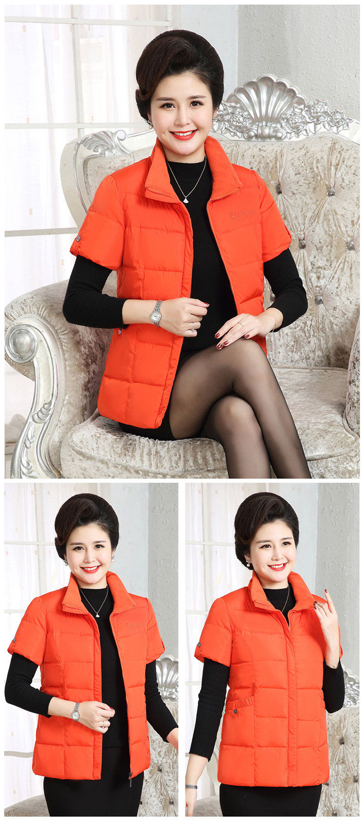Демисезонная майка топ с пухом, удерживающая тепло куртка, жилет, для среднего возраста, короткий рукав, увеличенная толщина