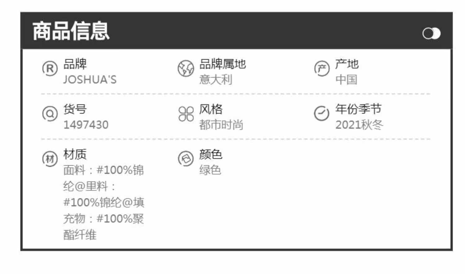 Продавец:shoplinq西有奥莱旗舰店