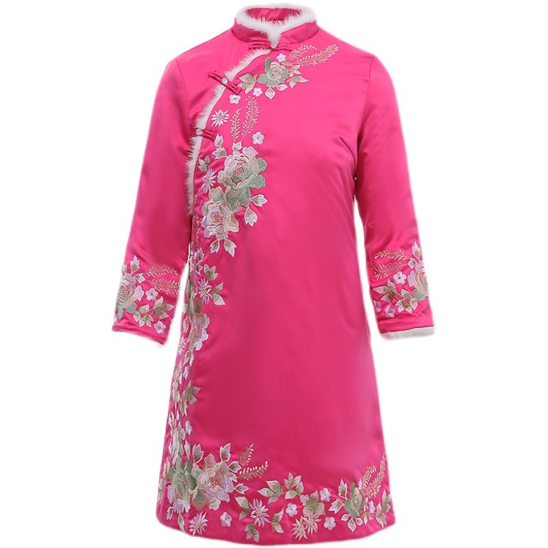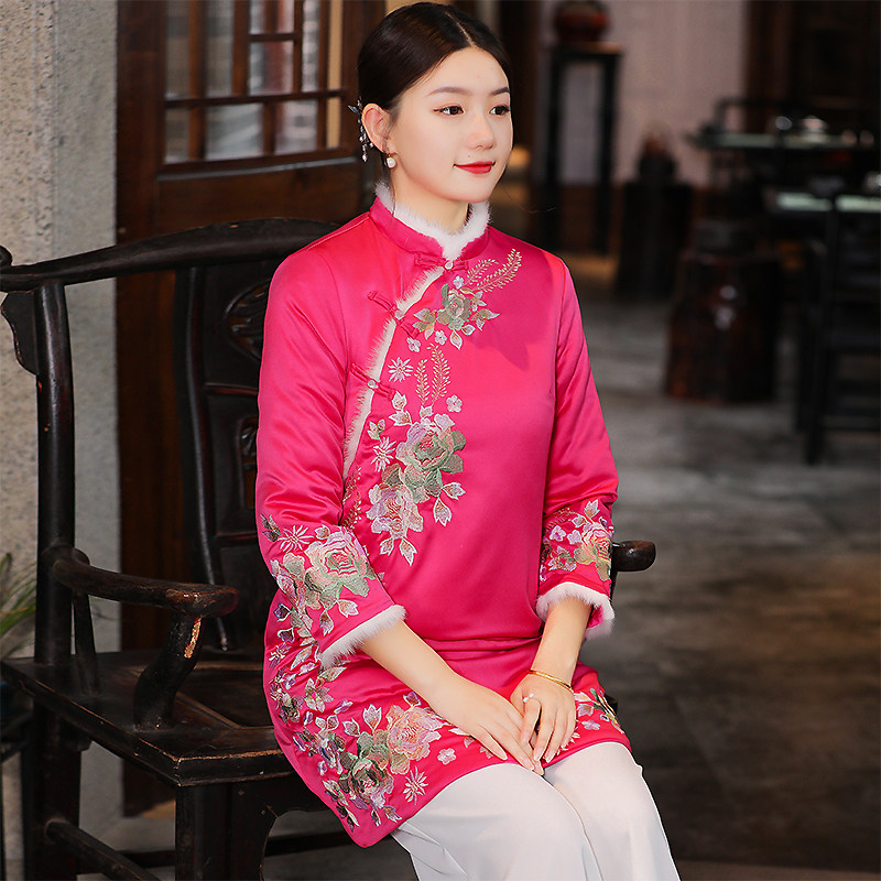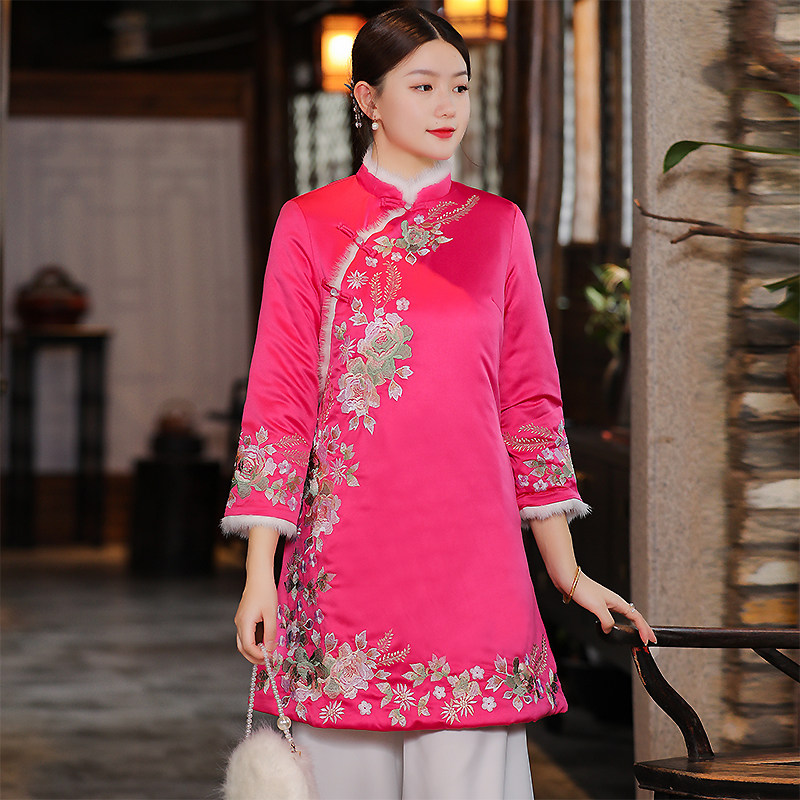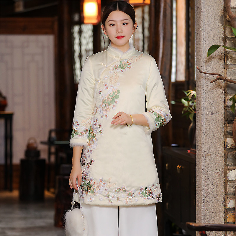 Ретро куртка, пуховик, китайский стиль, 2025 года, с вышивкой, большой размер
