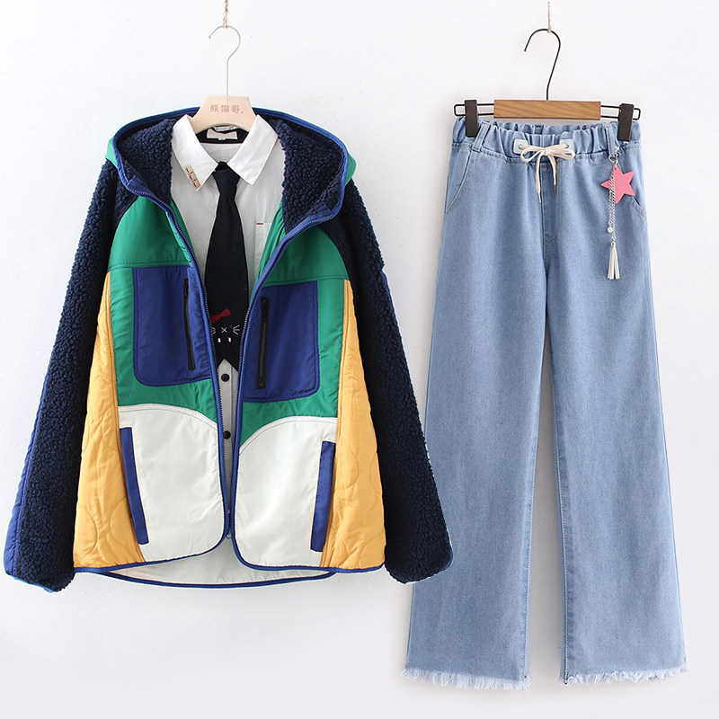 Японская мягкая девушка в стиле хараджуки, детская строчка, контрастные свободные работники, капля