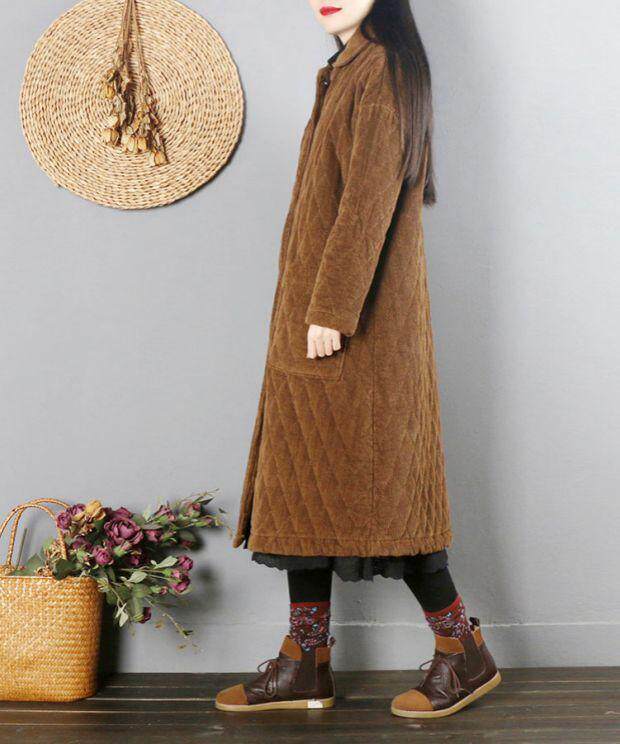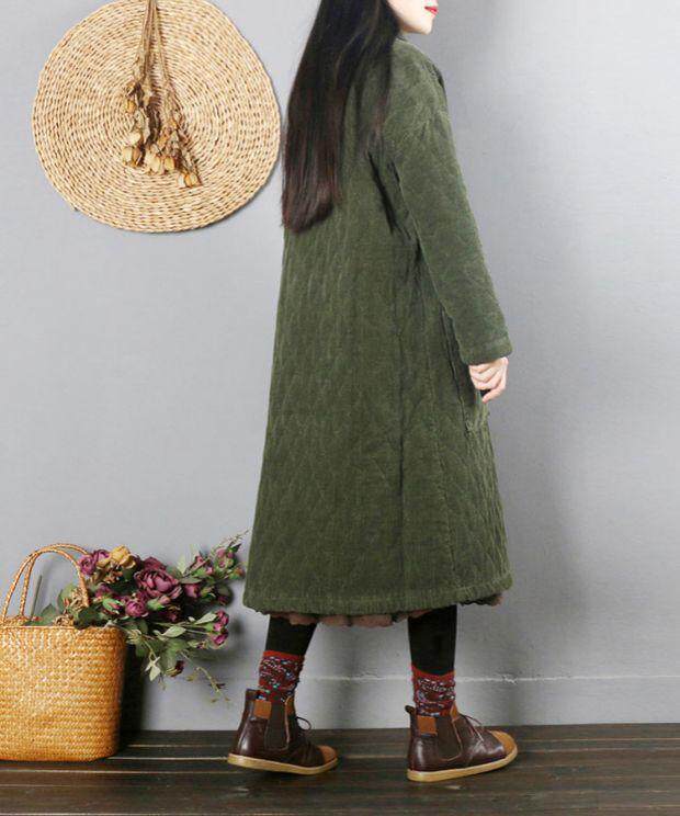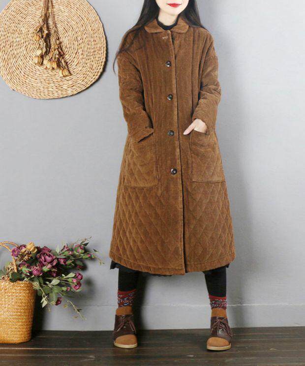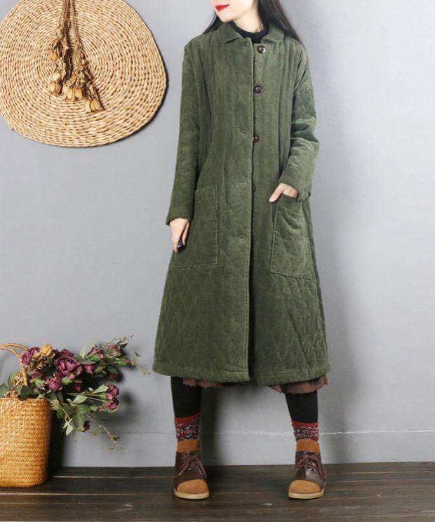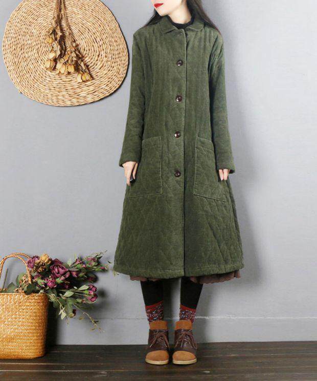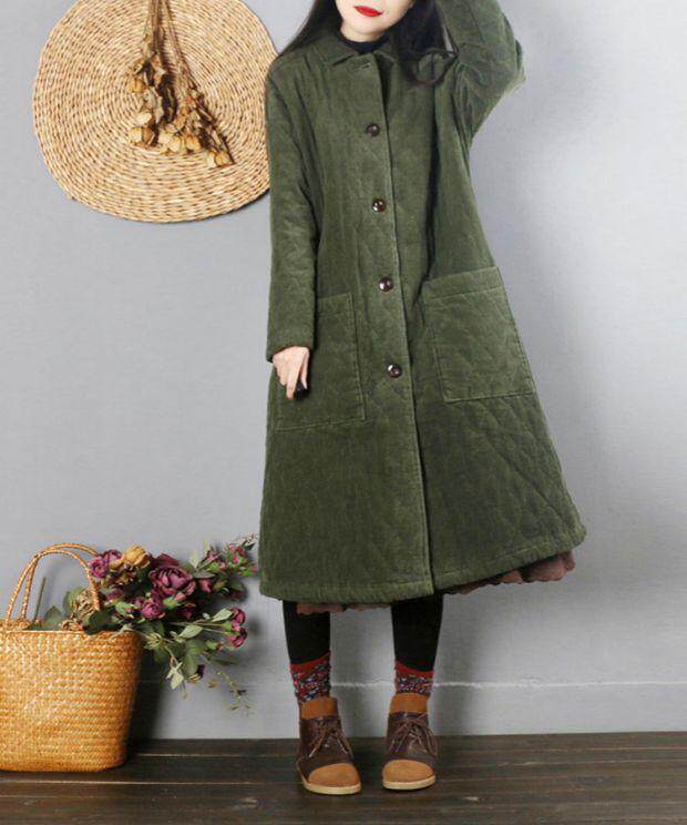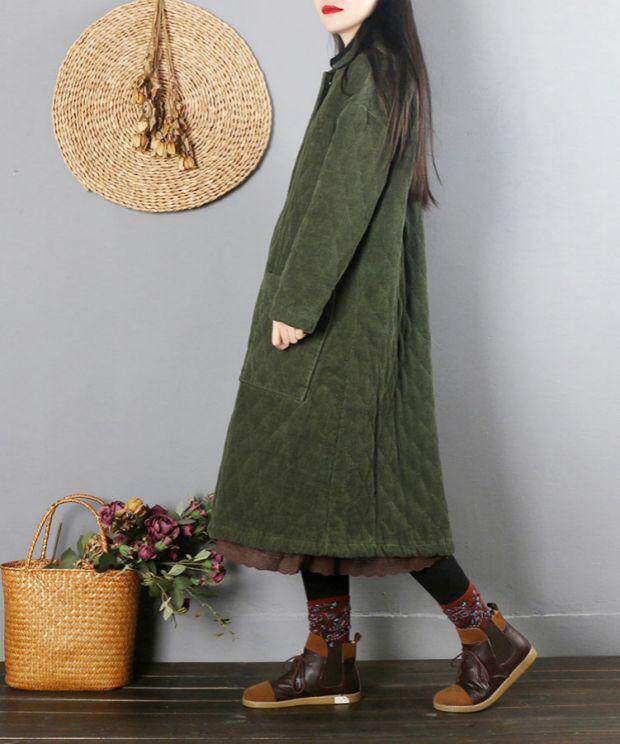 Ретро вельветовый демисезонный длинный пуховик, утепленная куртка, китайский стиль, средней длины