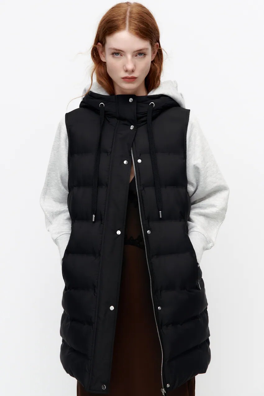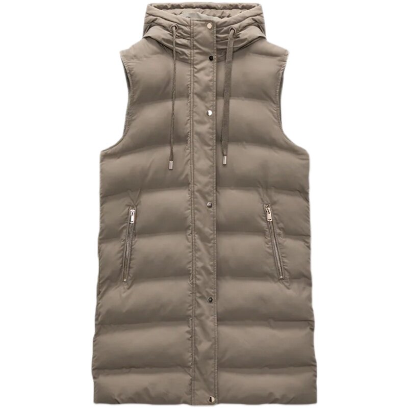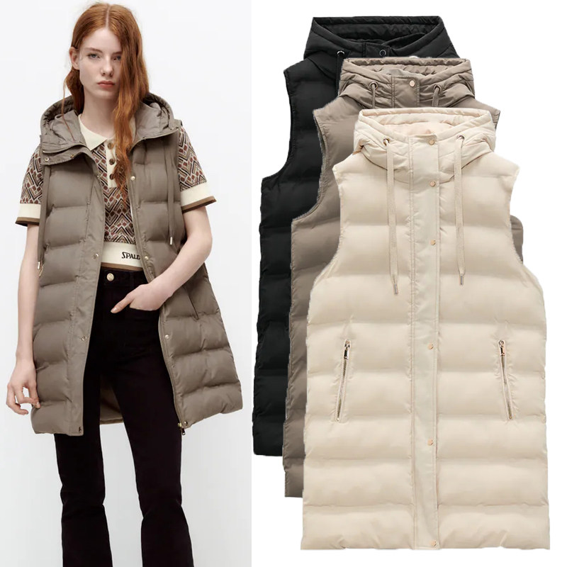 Демисезонный жилет, длинная толстовка с капюшоном, пуховик, майка топ, свободный крой, в корейском стиле, средней длины