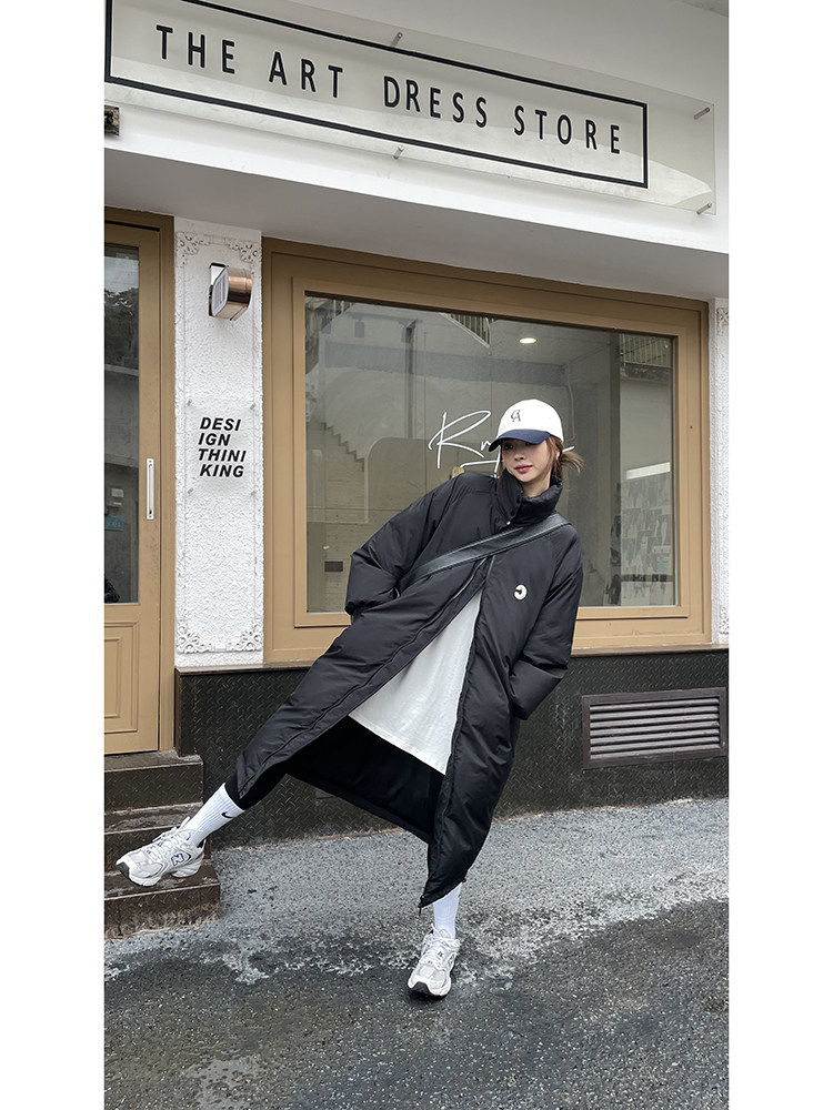 Зимний пуховик, сексуальная черная длинная куртка, коллекция 2022, увеличенная толщина