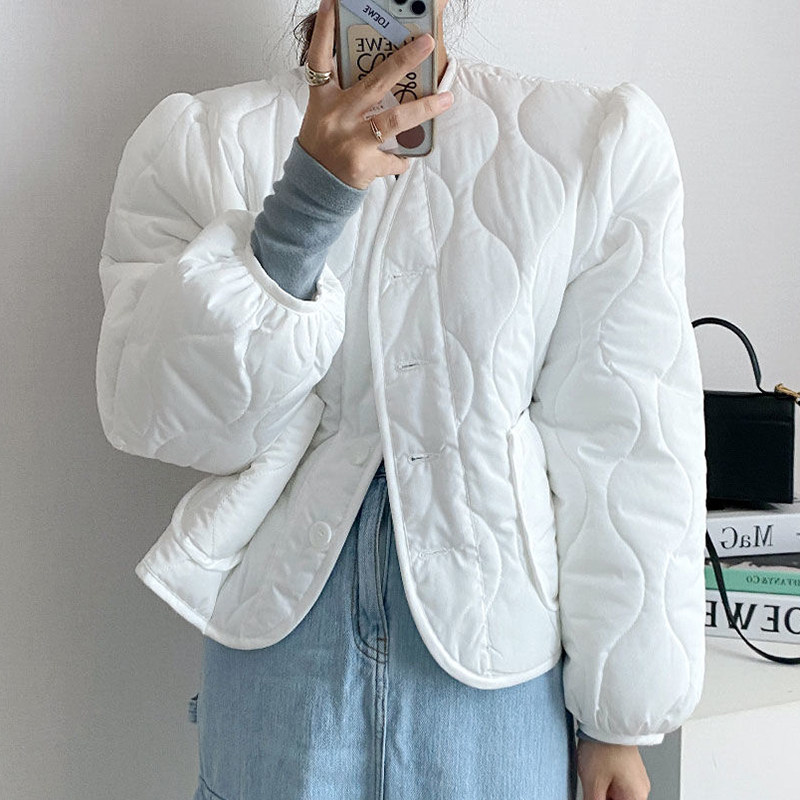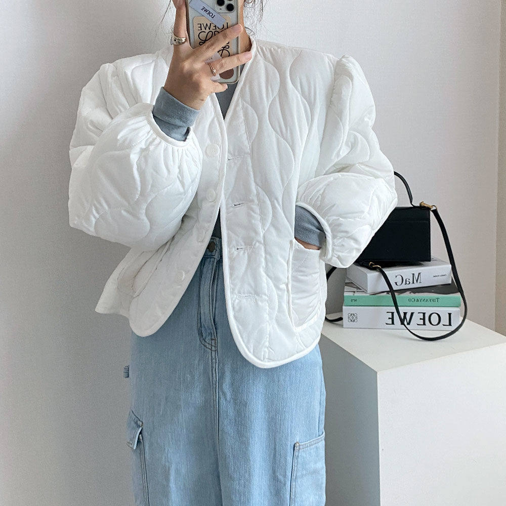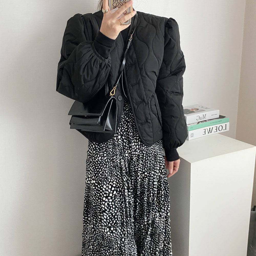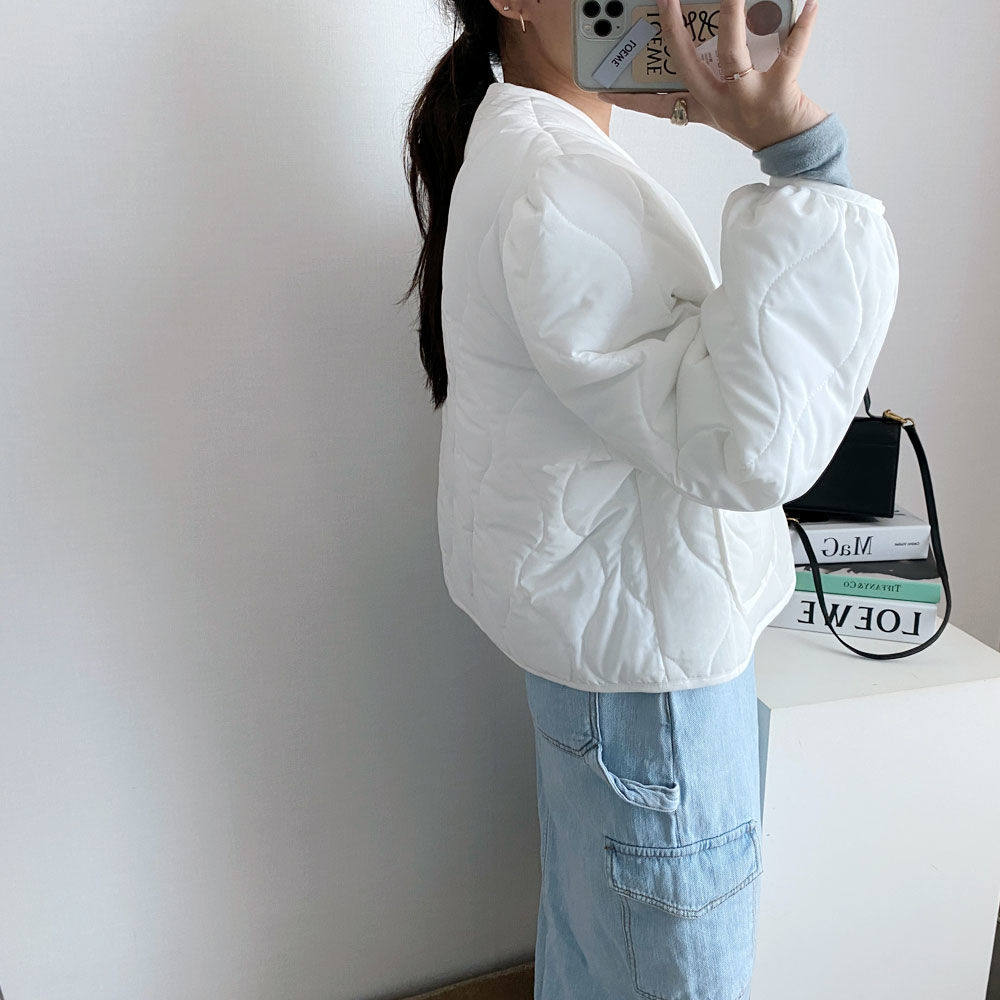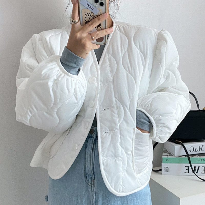 Ретро короткий лонгслив с ромбовидным узором, пуховик, куртка, в корейском стиле, V-образный вырез, оверсайз