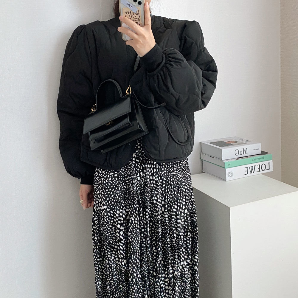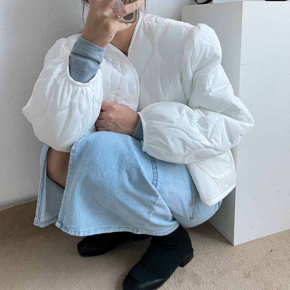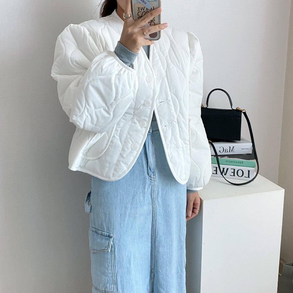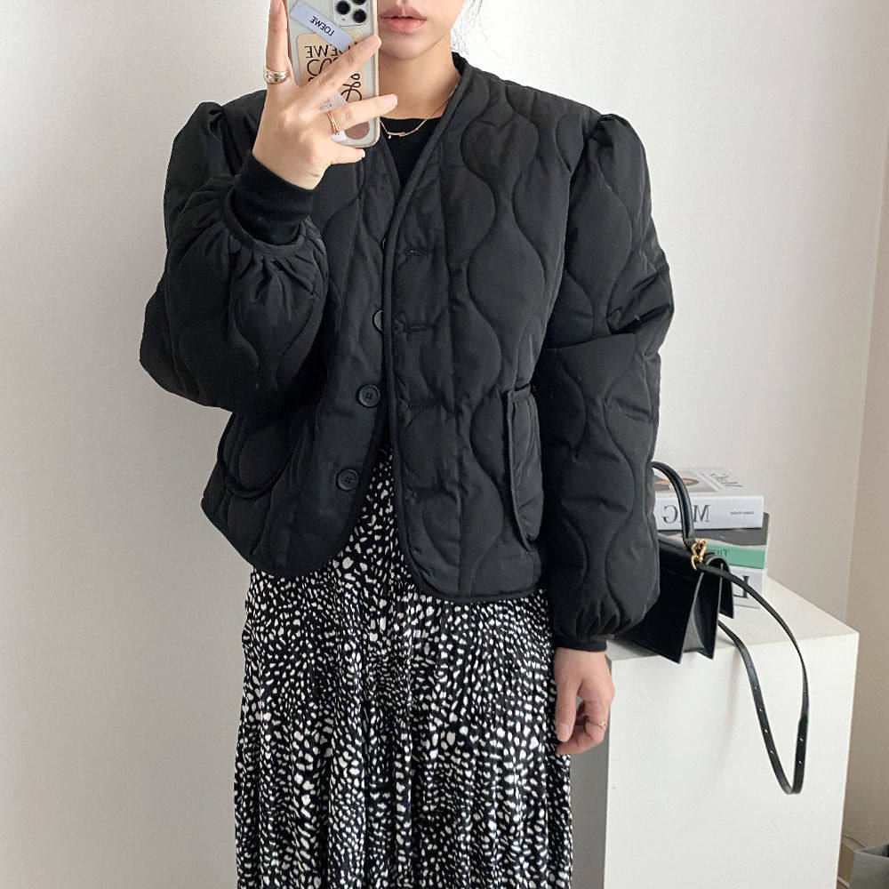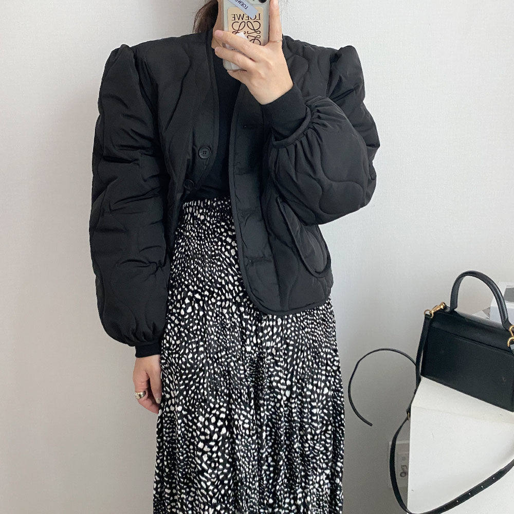 Ретро короткий лонгслив с ромбовидным узором, пуховик, куртка, в корейском стиле, V-образный вырез, оверсайз