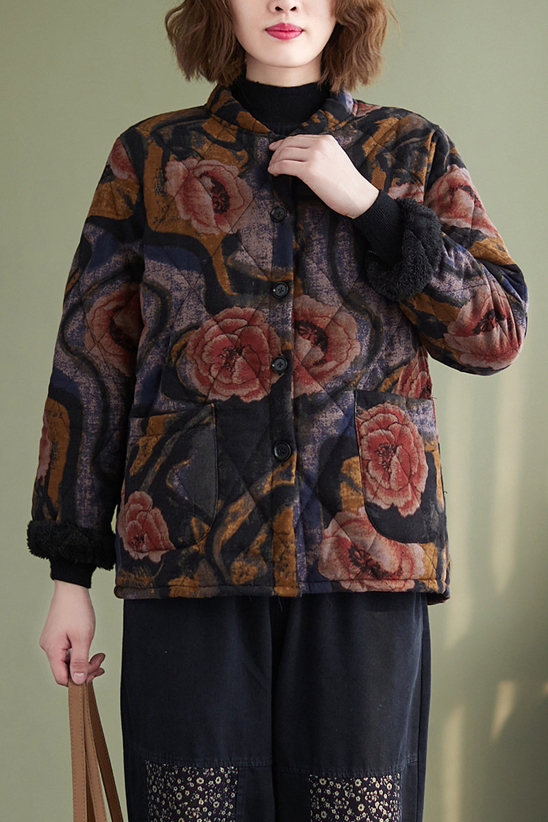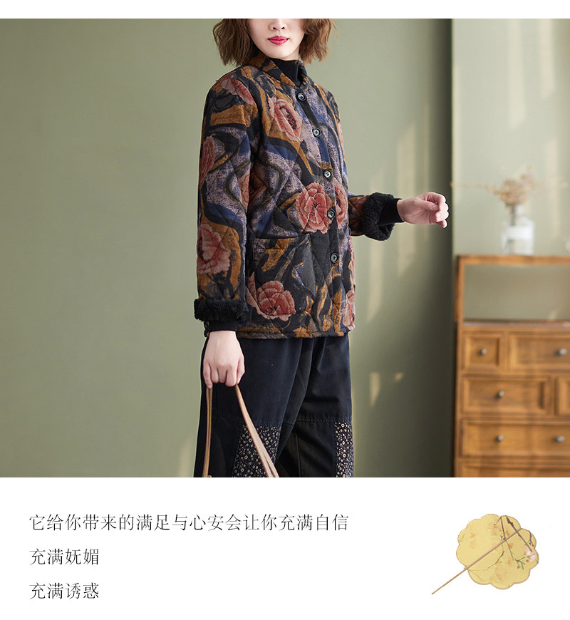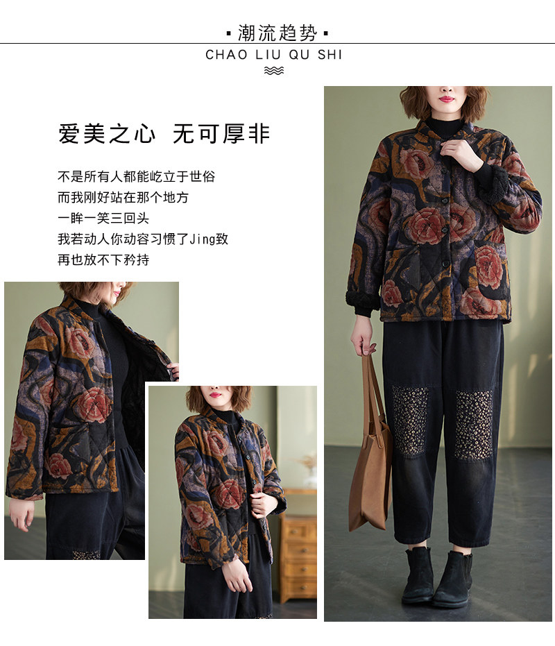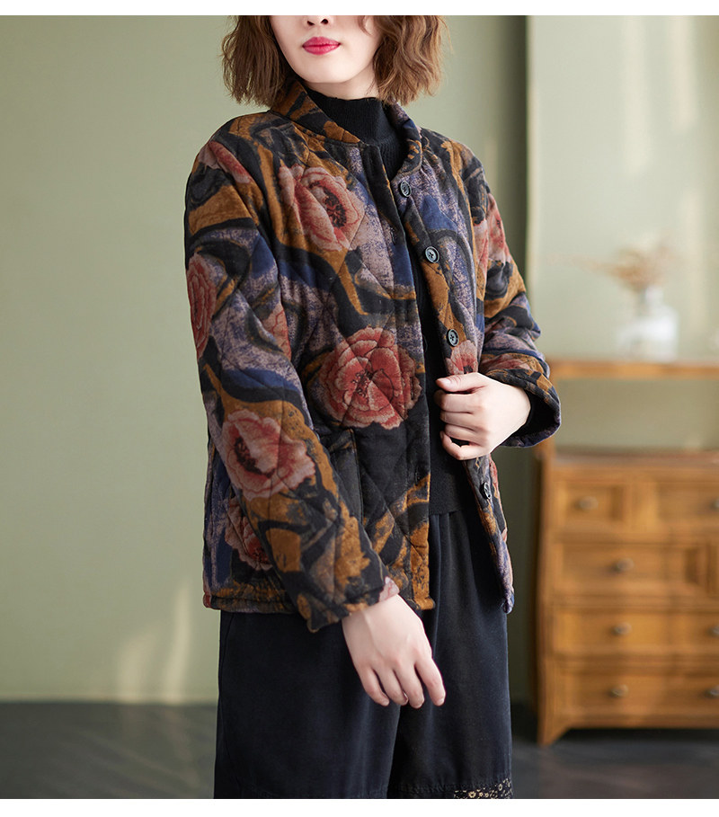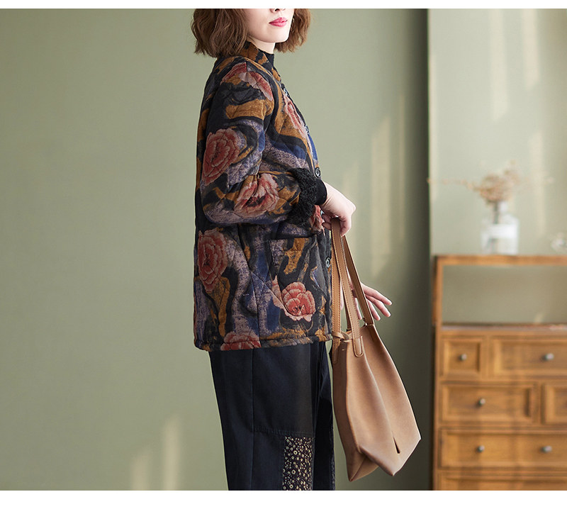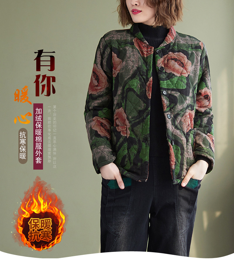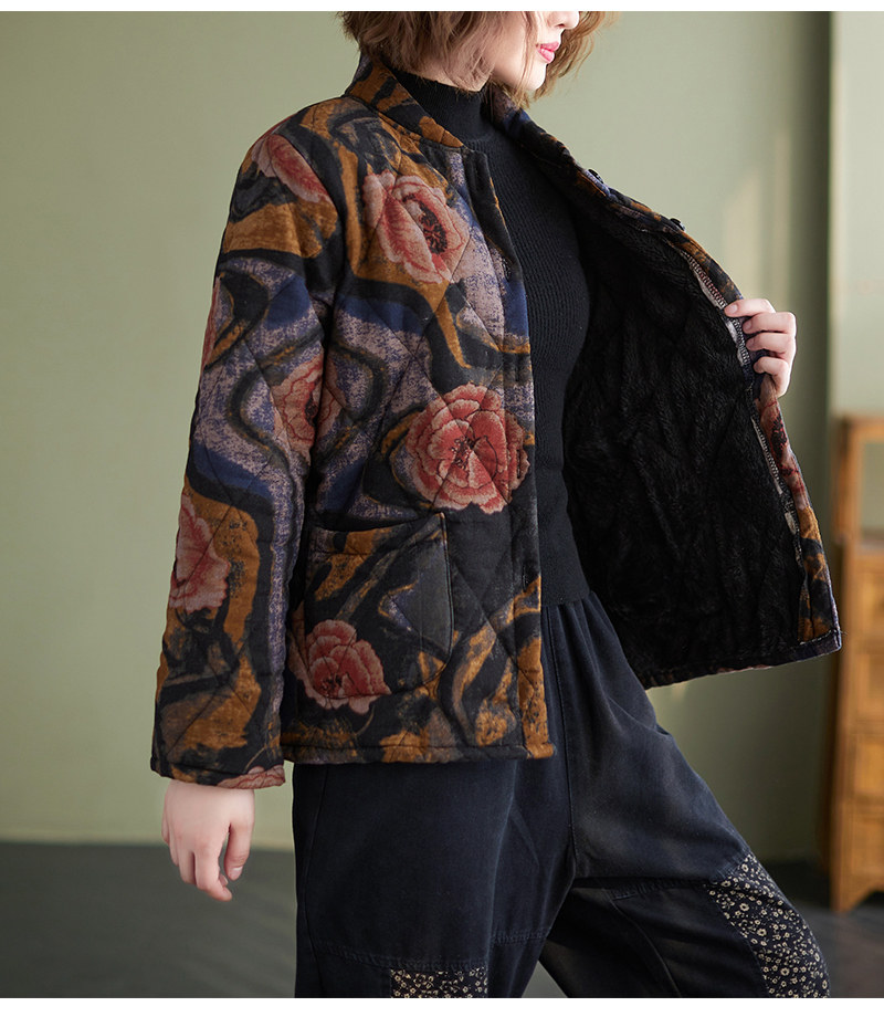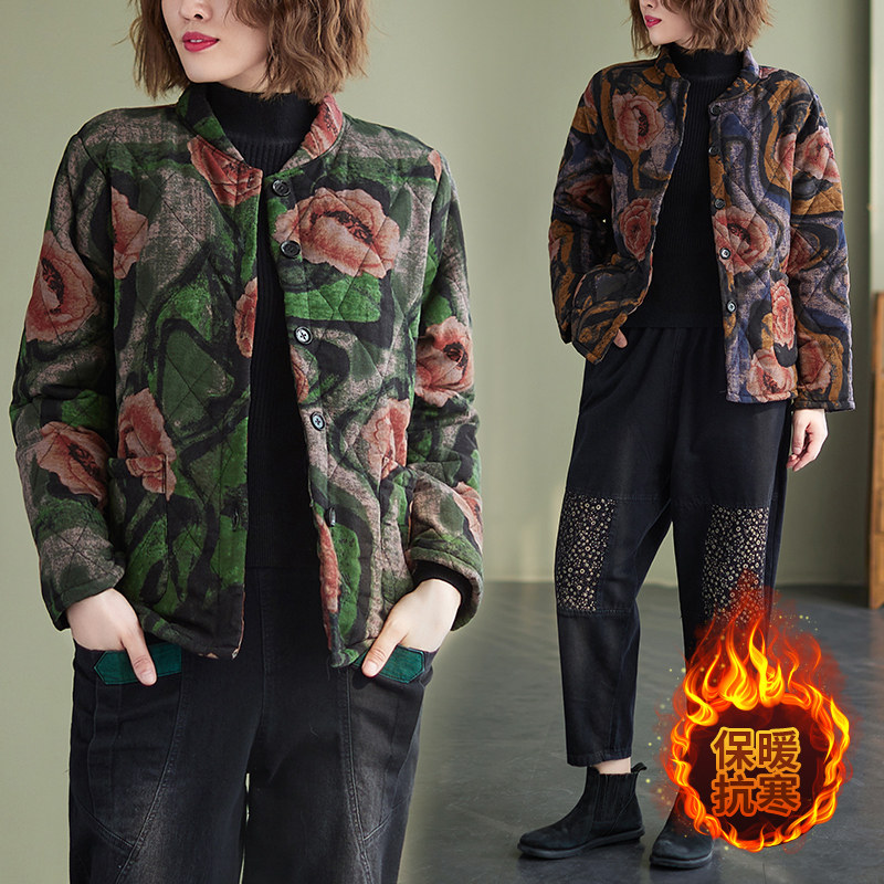 Зимняя этническая ретро утепленная куртка, этнический стиль, из хлопка и льна, оверсайз, свободный крой