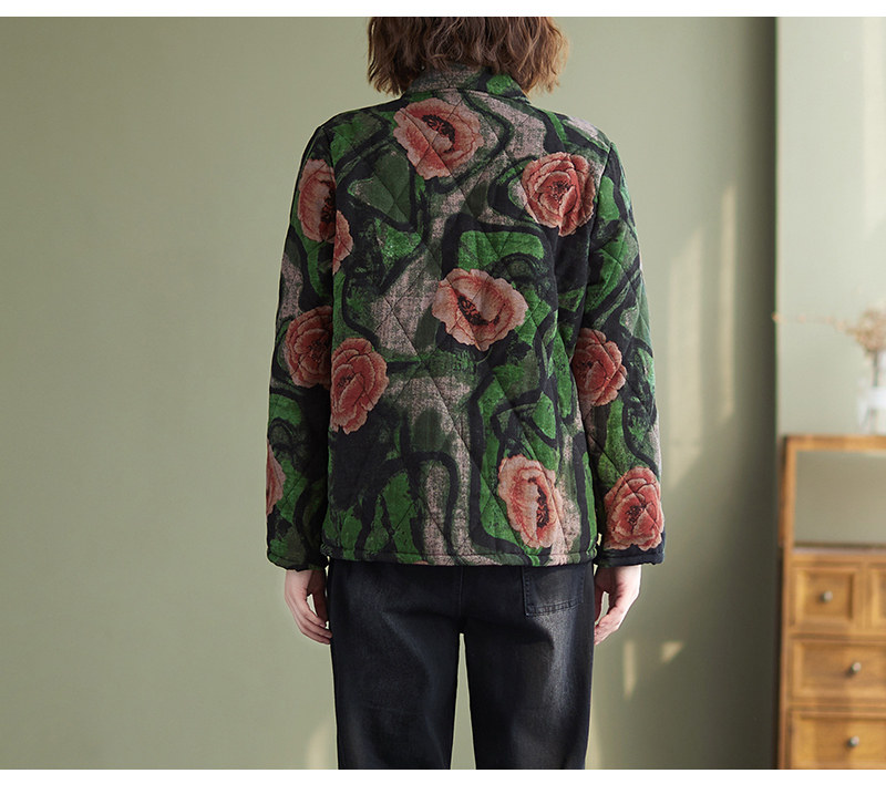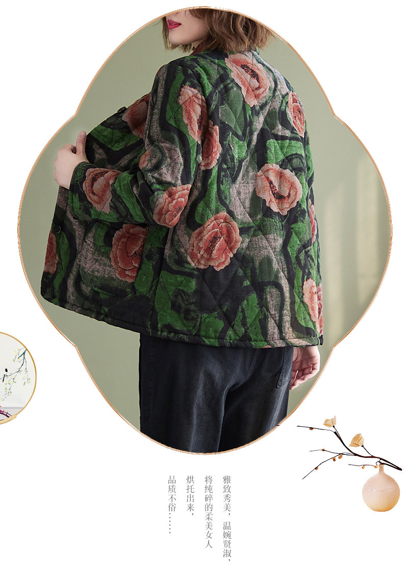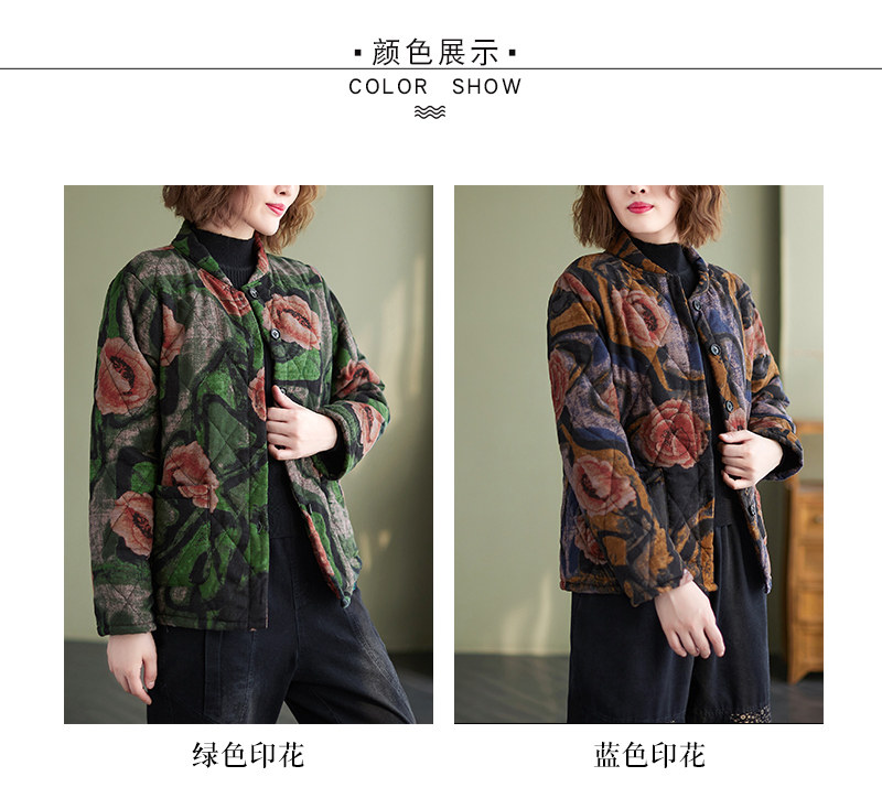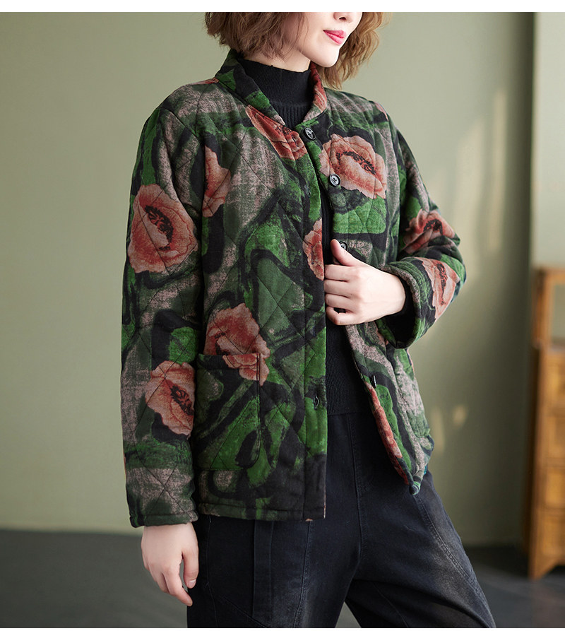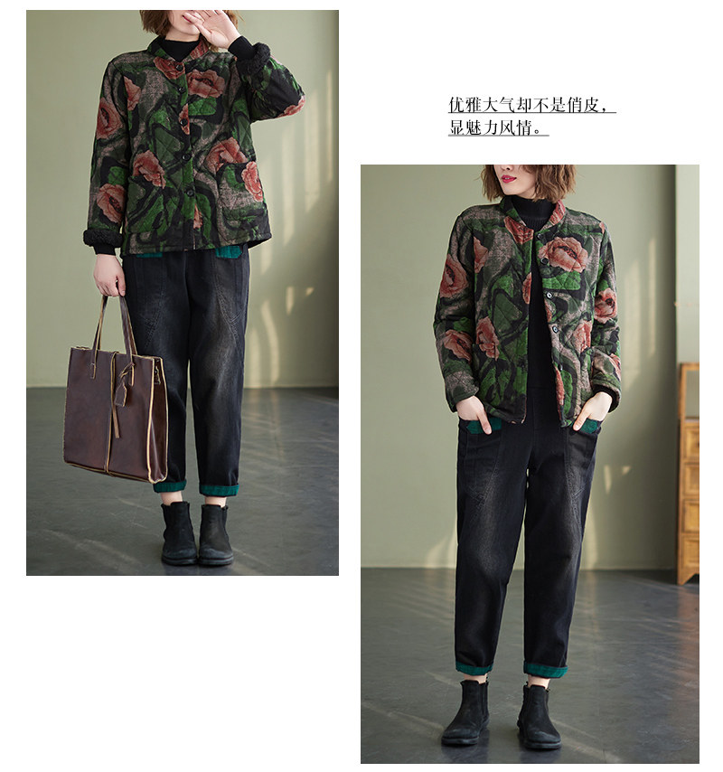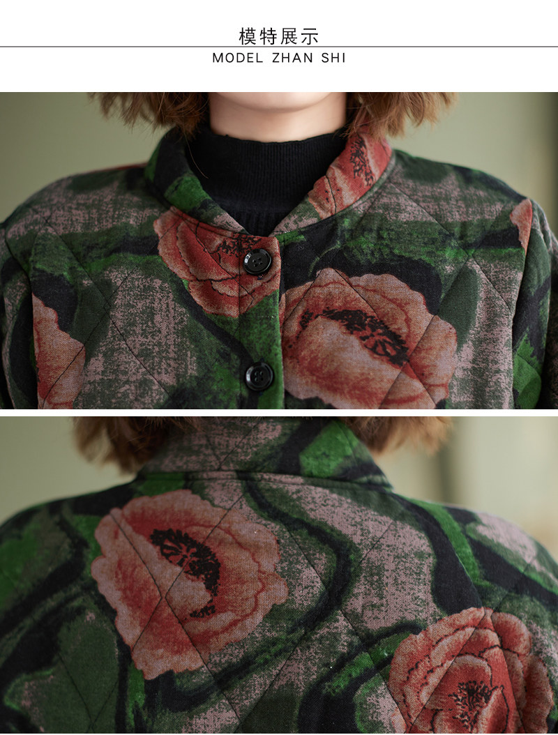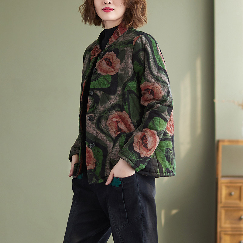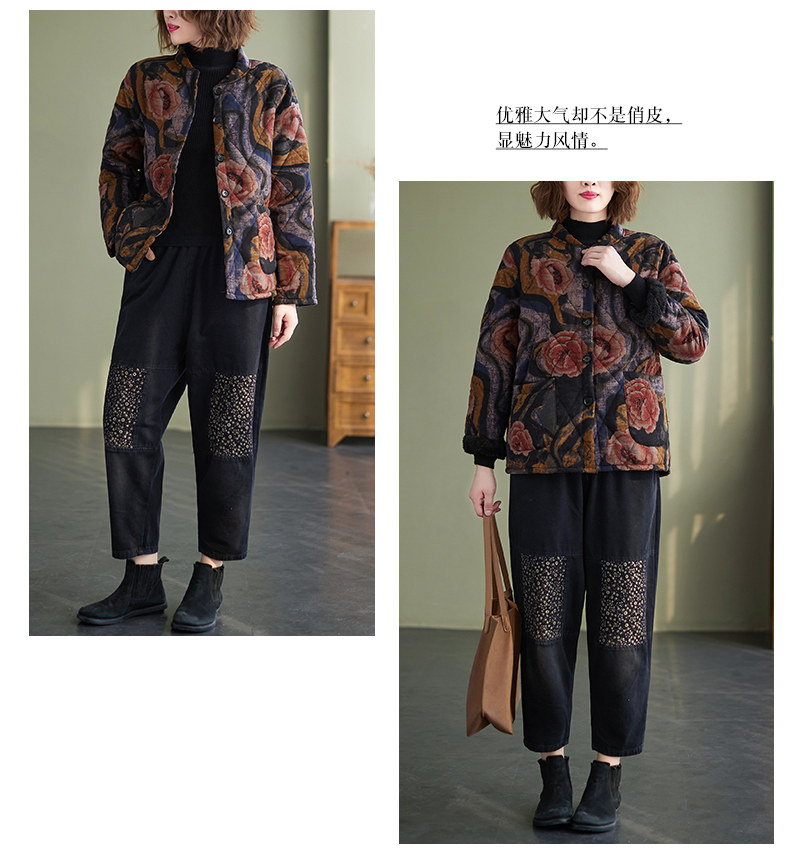 Зимняя этническая ретро утепленная куртка, этнический стиль, из хлопка и льна, оверсайз, свободный крой
