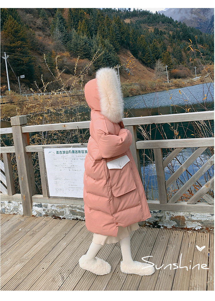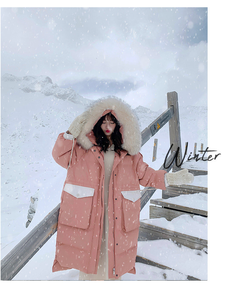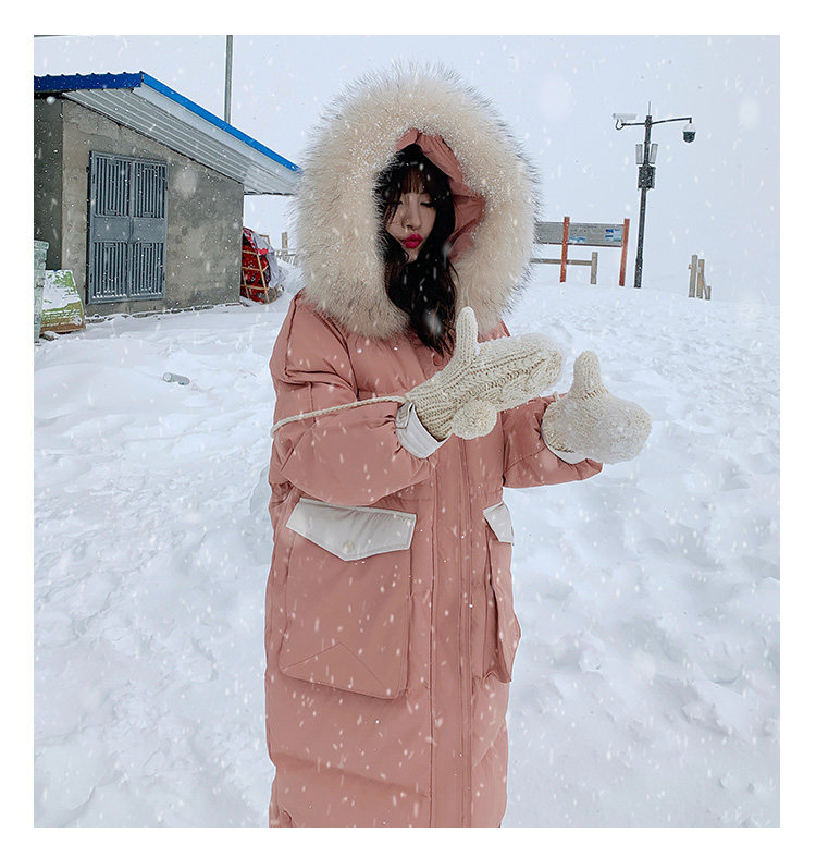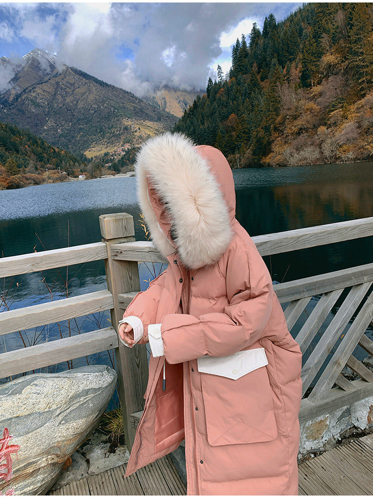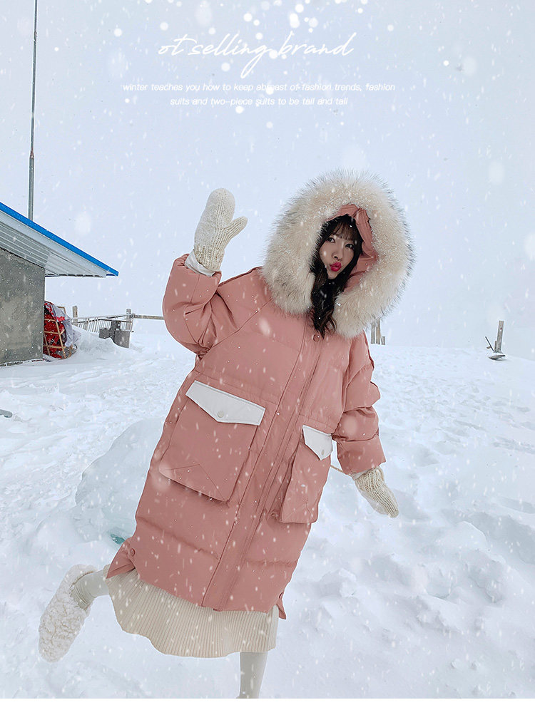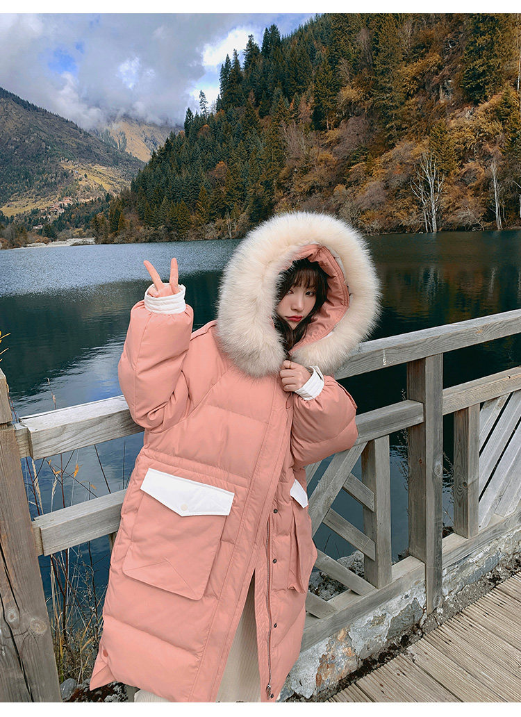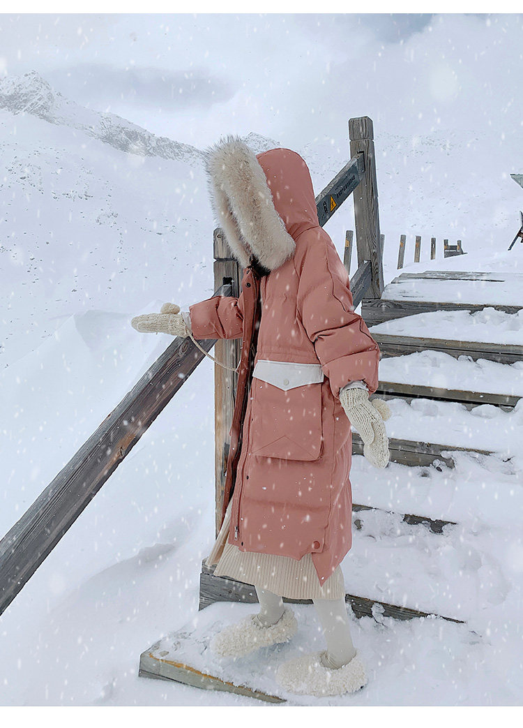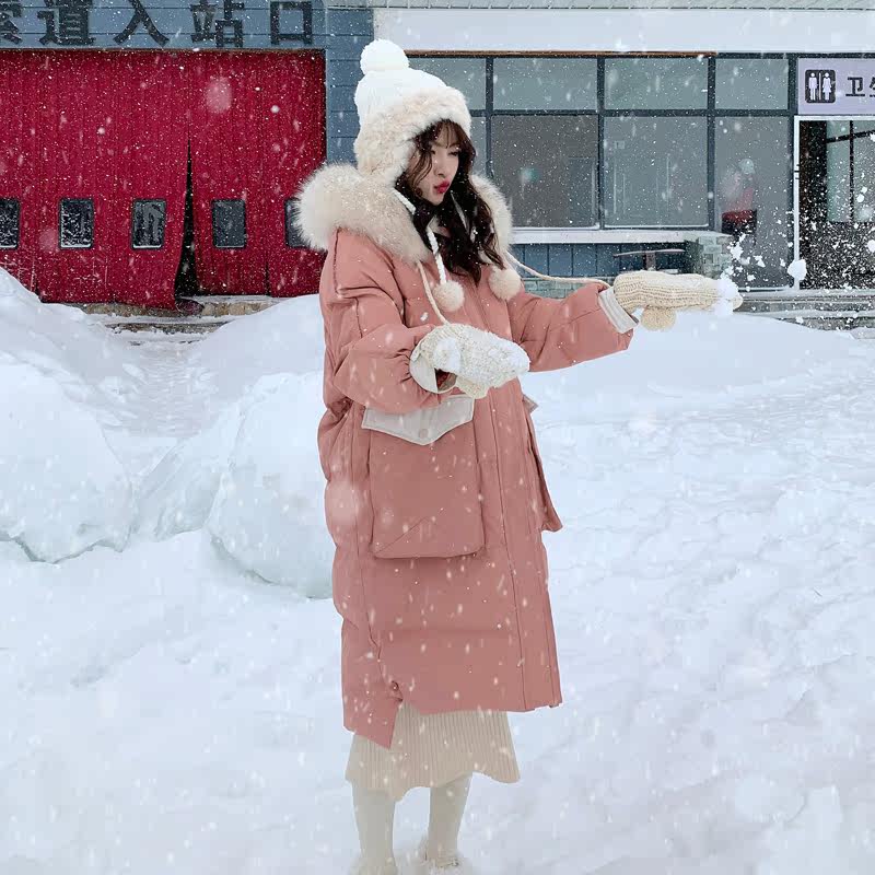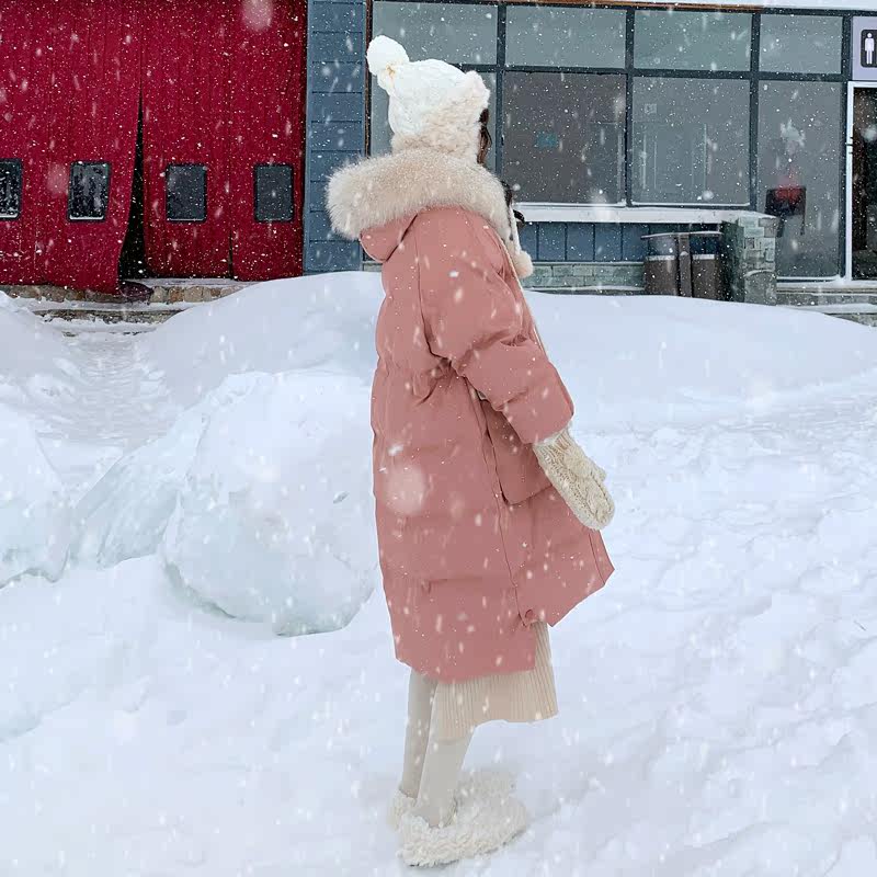 Розовый длинный пуховик с пухом, зимняя толстовка с капюшоном, в корейском стиле, увеличенная толщина, набивка пером, средней длины, коллекция 2021