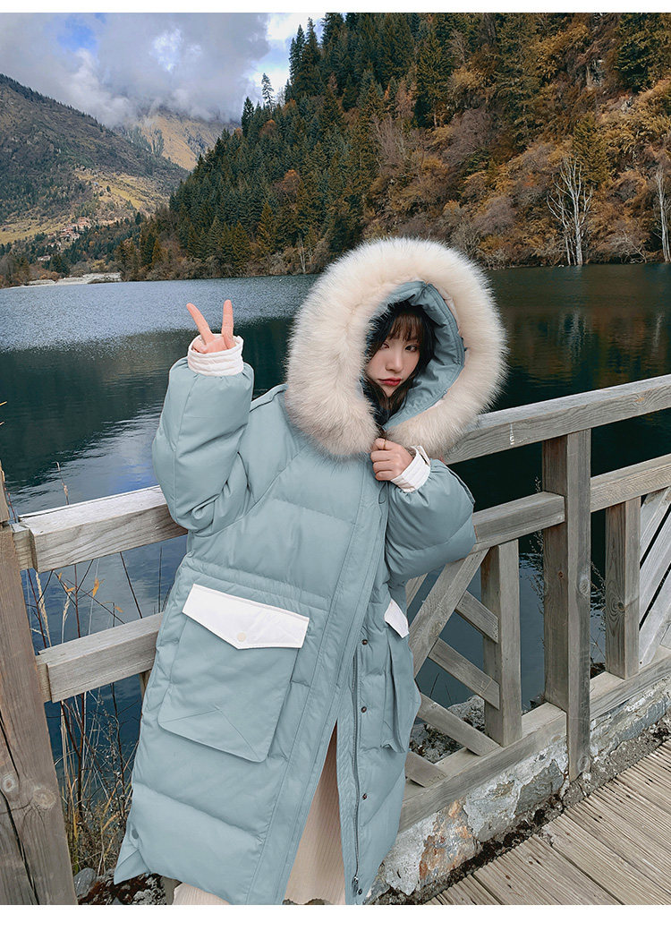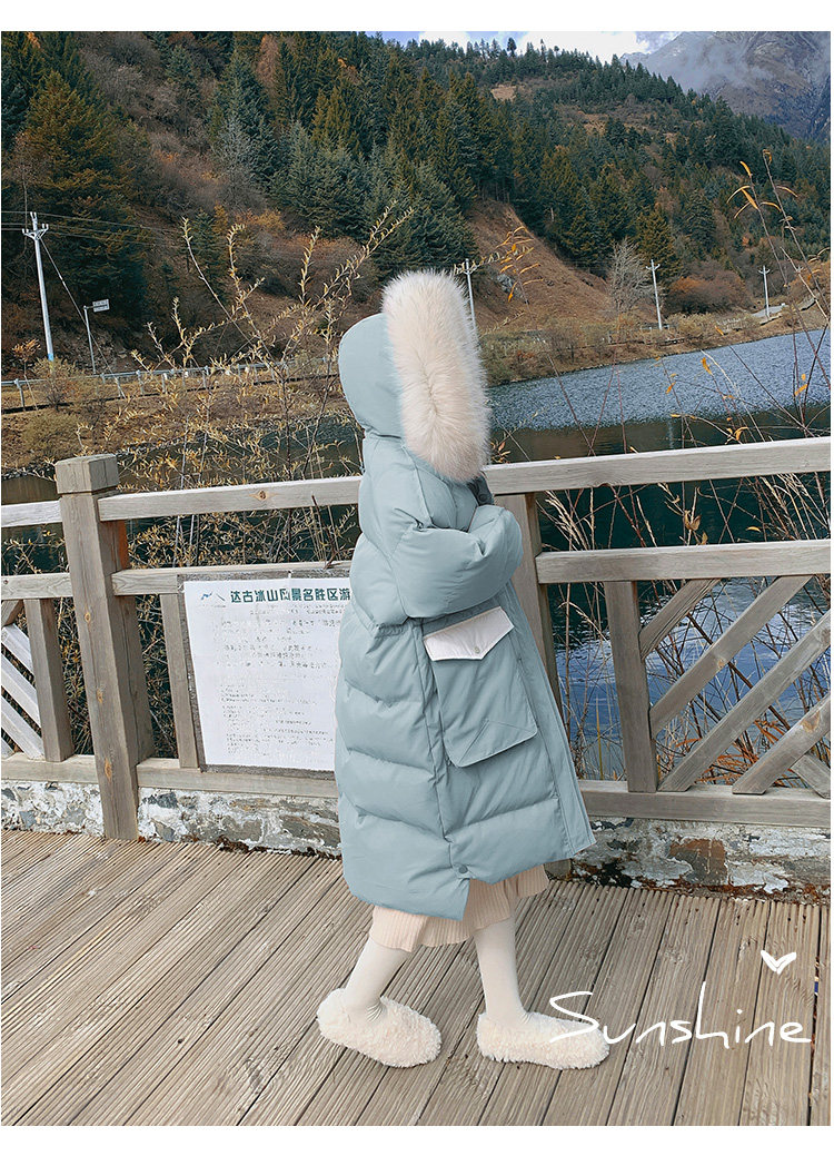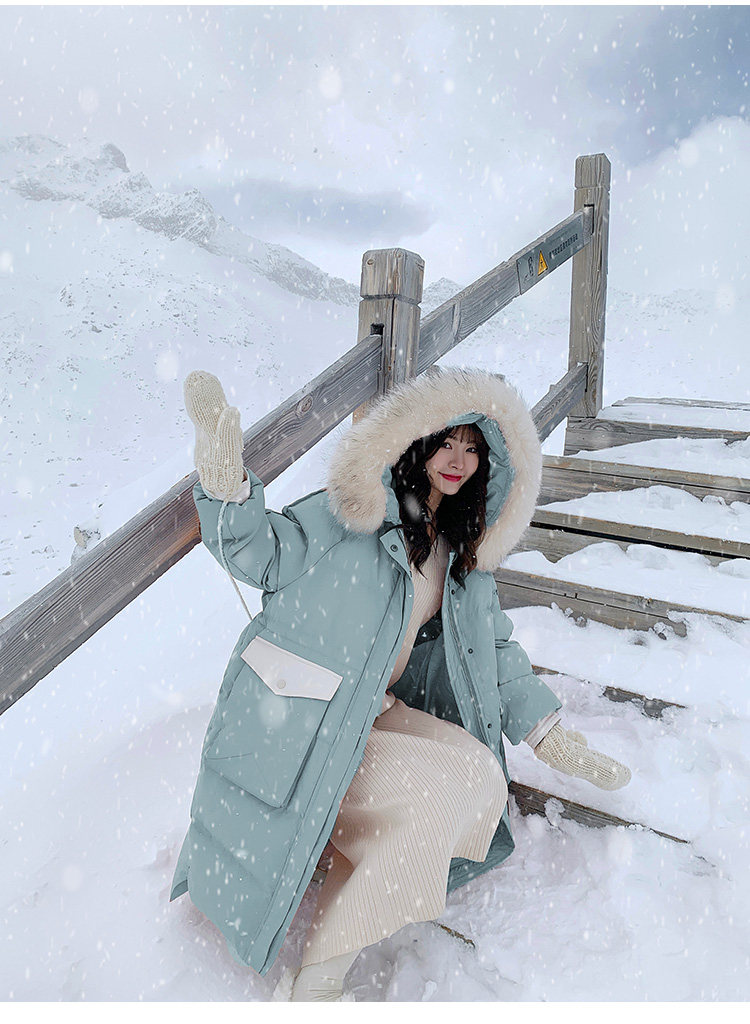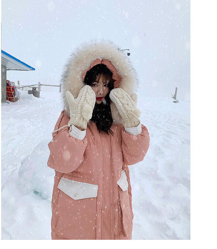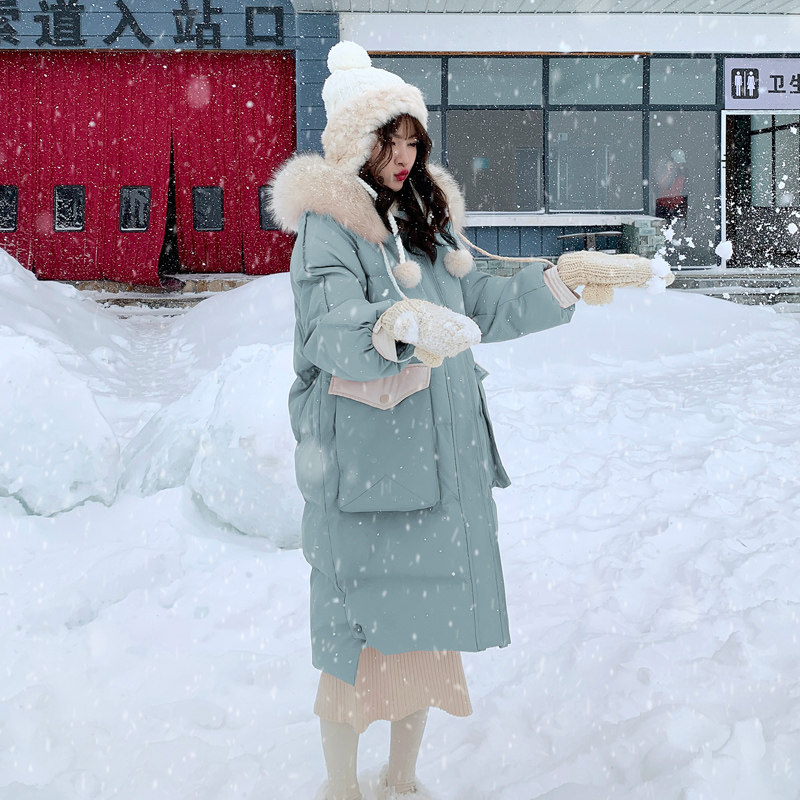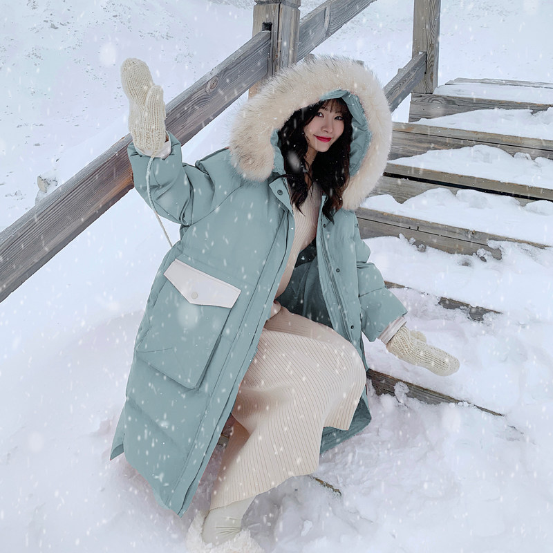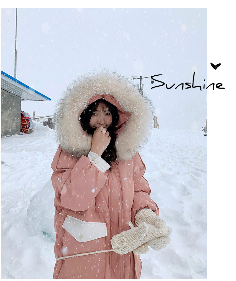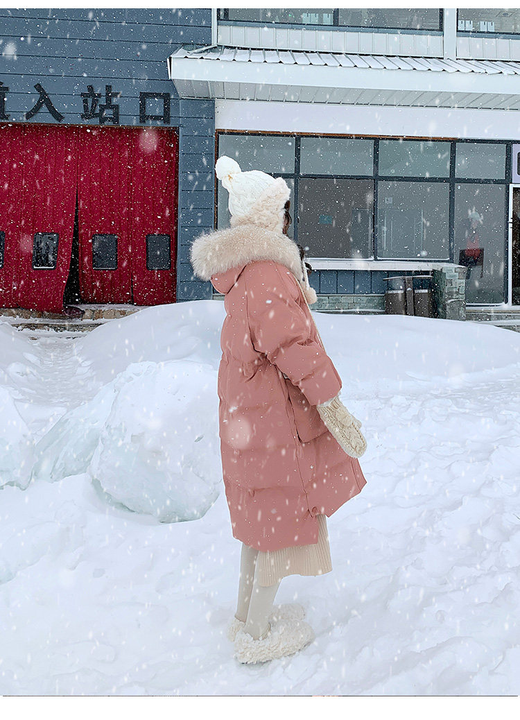 Розовый длинный пуховик с пухом, зимняя толстовка с капюшоном, в корейском стиле, увеличенная толщина, набивка пером, средней длины, коллекция 2021