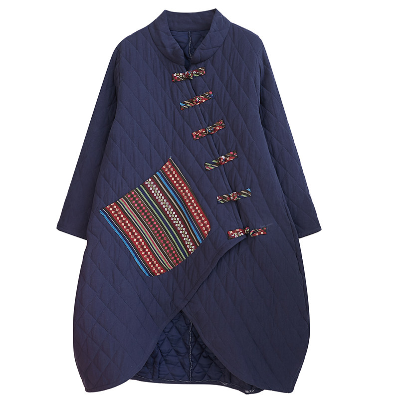 Ретро стеганый демисезонный длинный пуховик, куртка, из хлопка и льна, оверсайз, большой размер, увеличенная толщина, средней длины