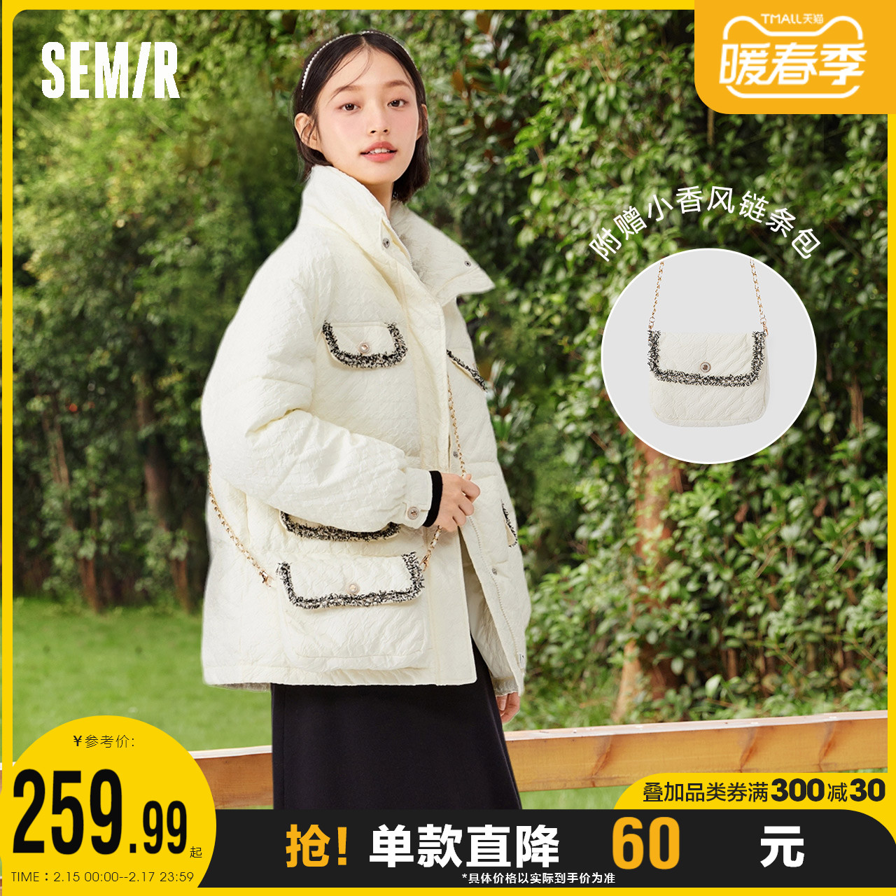 Semir, длинный пуховик, зимняя элегантная милая куртка, средней длины, коллекция 2021, в стиле Шанель