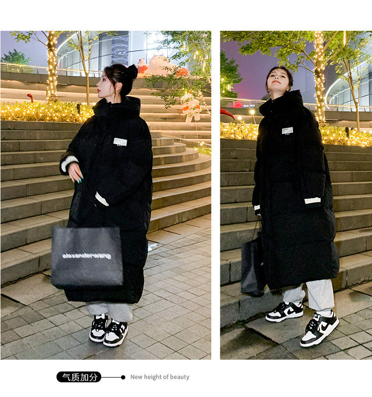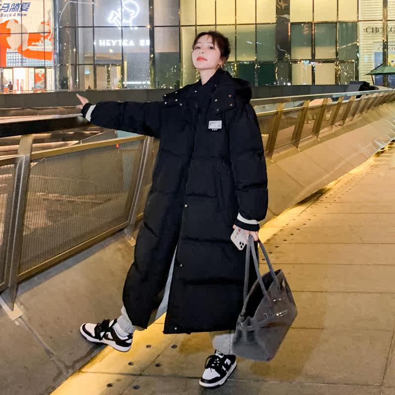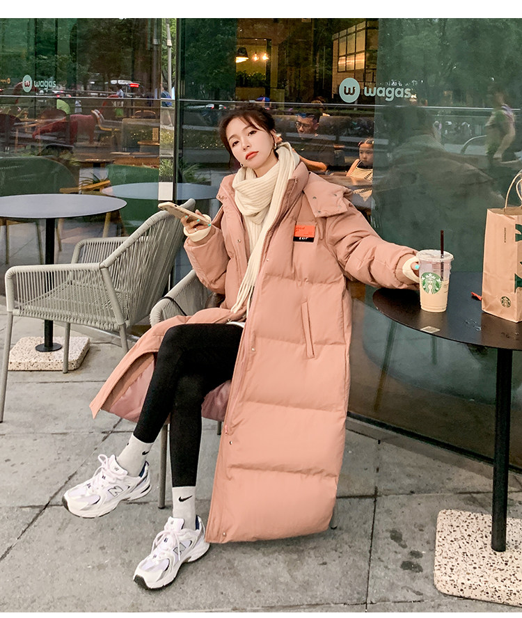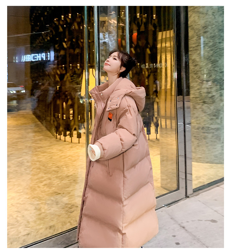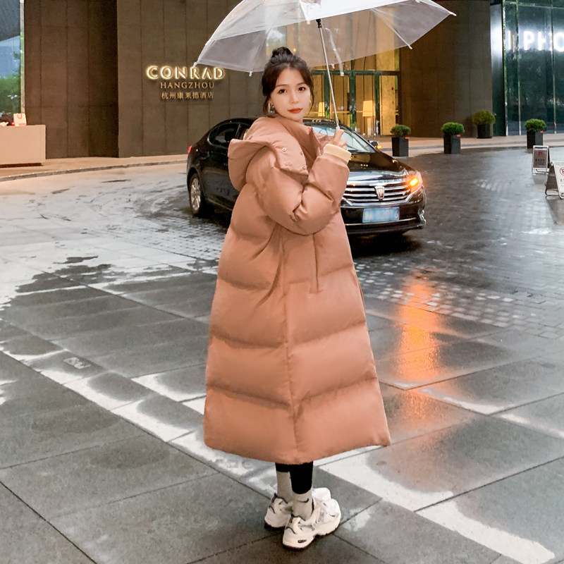 Розовый длинный пуховик с пухом, зимняя толстовка с капюшоном, средней длины, коллекция 2021, в корейском стиле, оверсайз