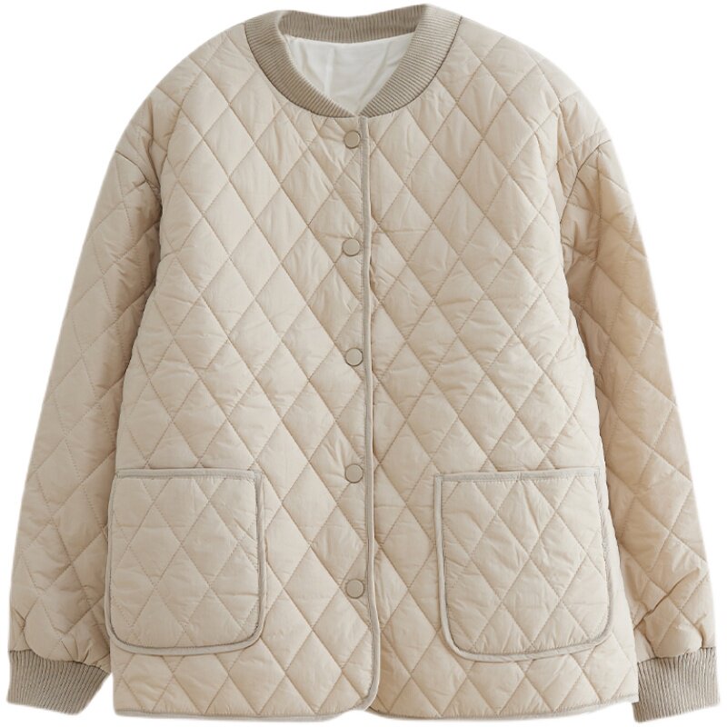 Зимний пуховик с ромбовидным узором, бейсбольная стеганая утепленная короткая куртка для отдыха