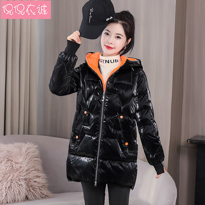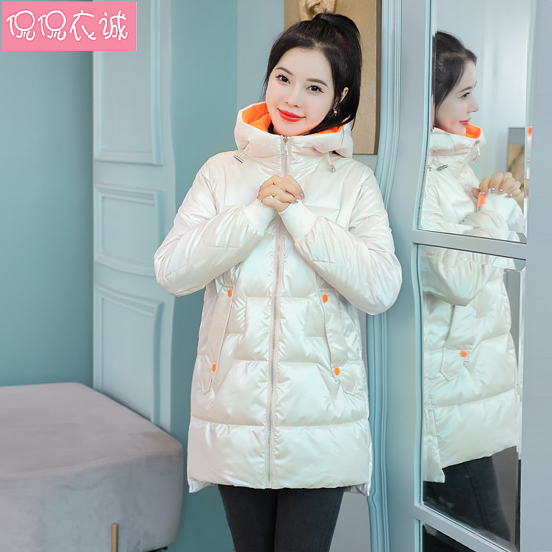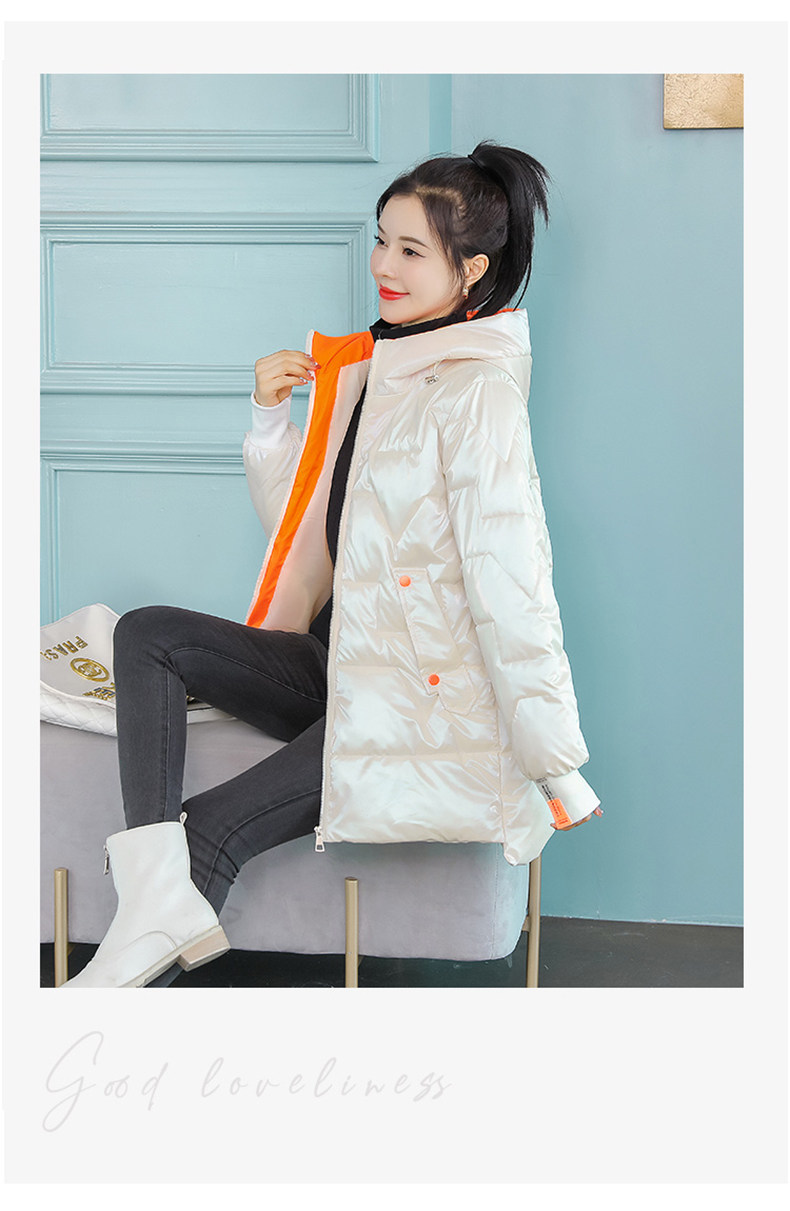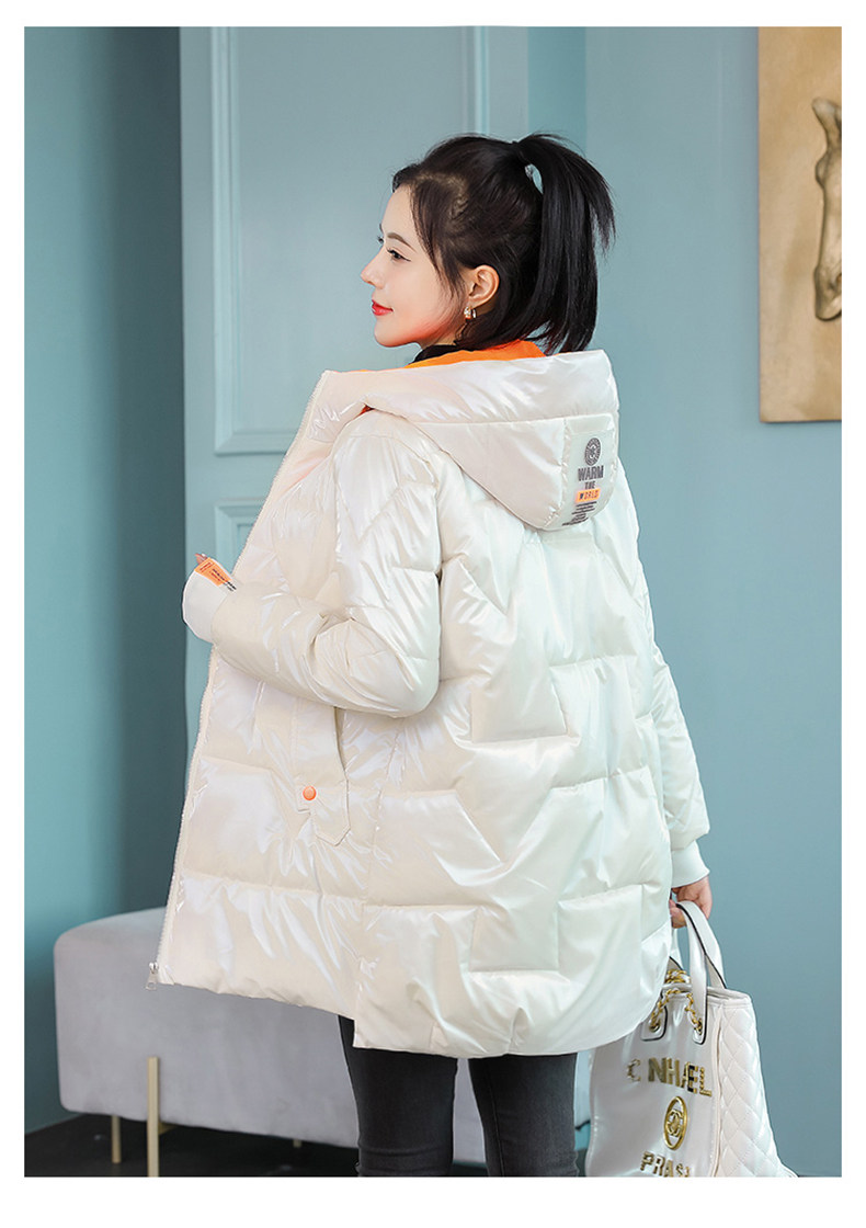 Глянцевый пуховик с пухом, куртка для отдыха, комплект, белая зимняя толстовка с капюшоном, коллекция 2021, средней длины