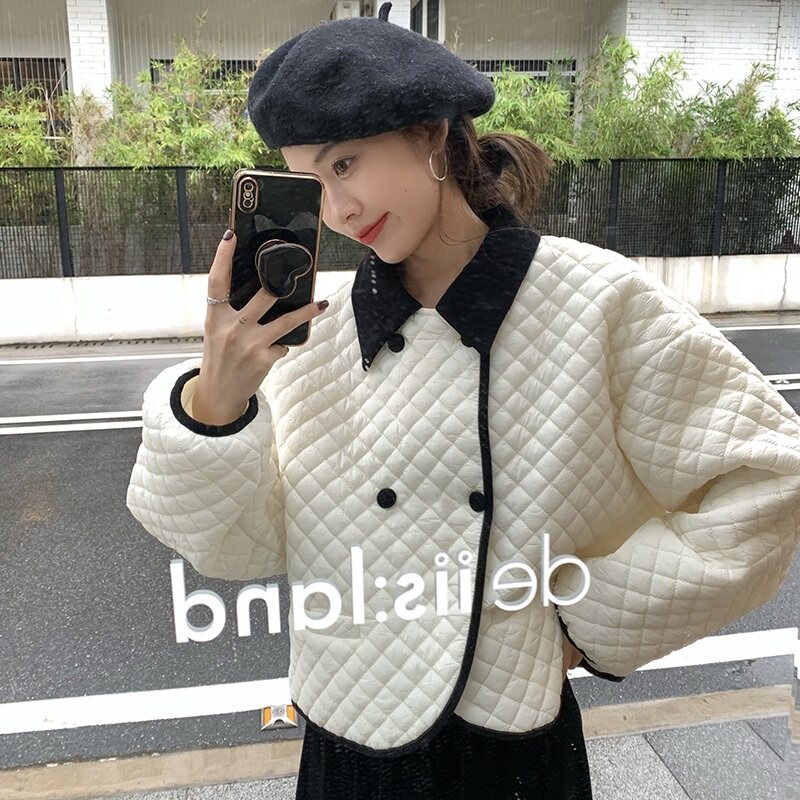 Белый зимний пуховик с ромбовидным узором с пухом, короткая сексуальная стеганая куртка, в корейском стиле, увеличенная толщина