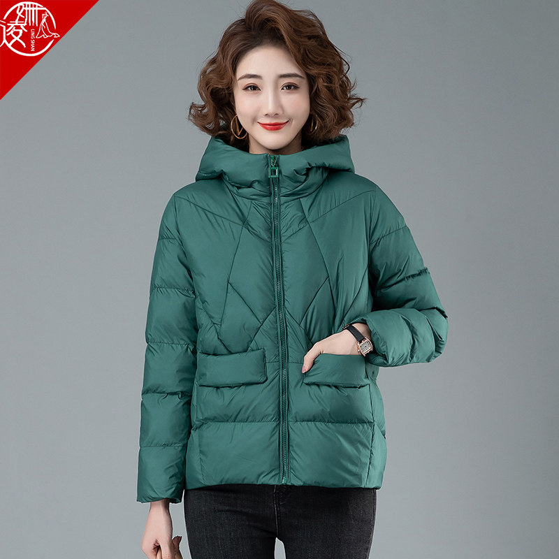 Короткий легкий и тонкий пуховик с пухом, зимняя демисезонная куртка для матери для отдыха с капюшоном, для среднего возраста