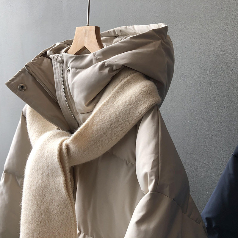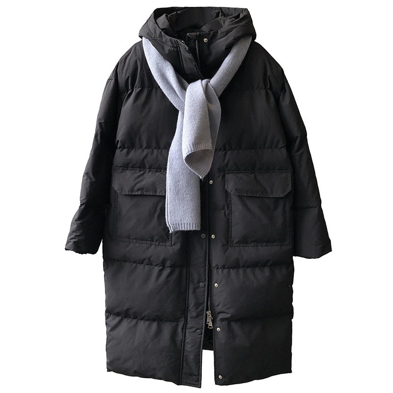 Длинный пуховик с капюшоном, куртка, шарф, комплект, средней длины, подходит для подростков, коллекция 2021