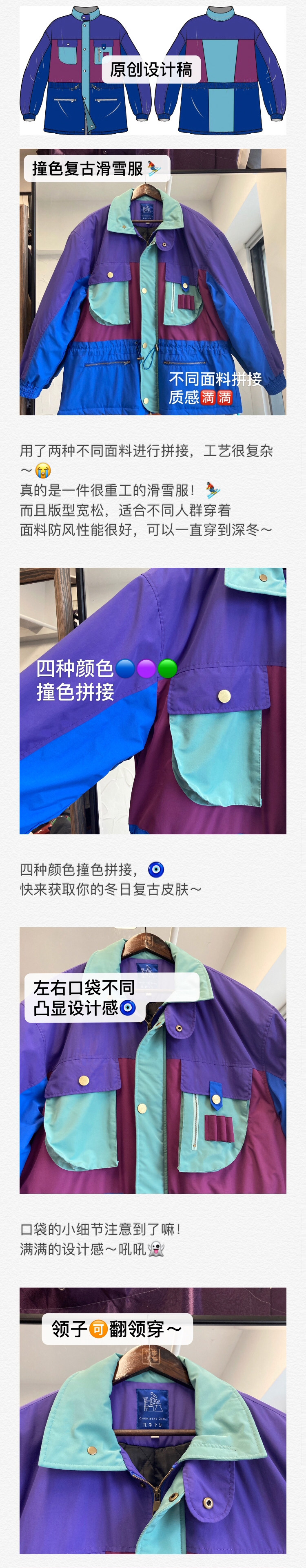 Химический лыжный ретро зимний пуховик, куртка, увеличенная толщина, оверсайз