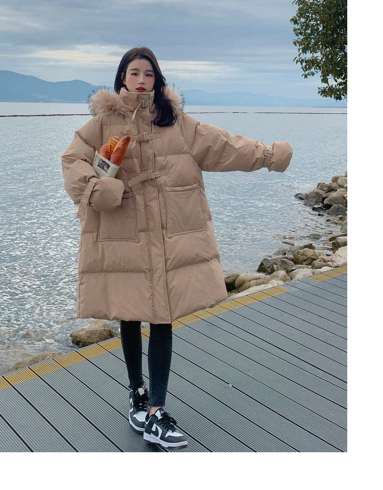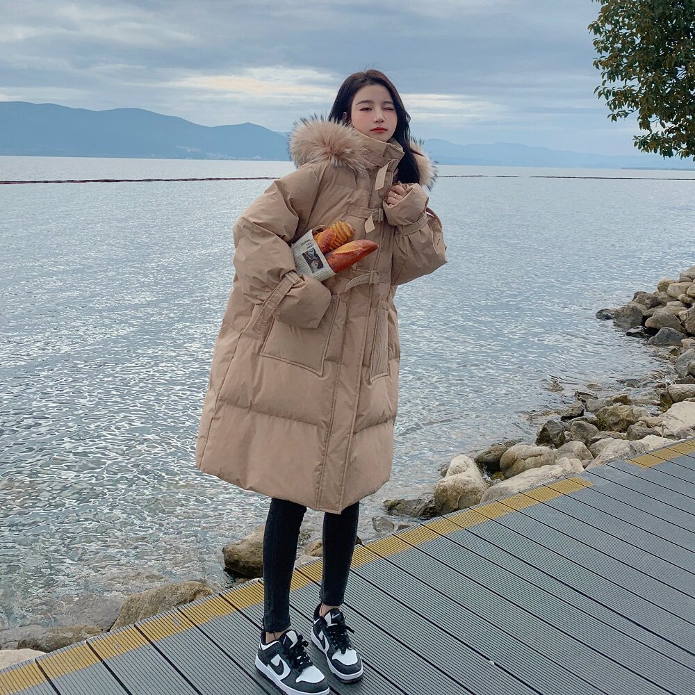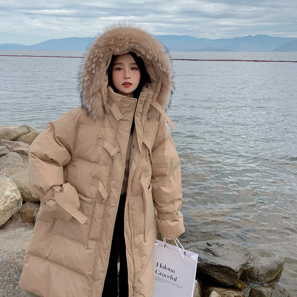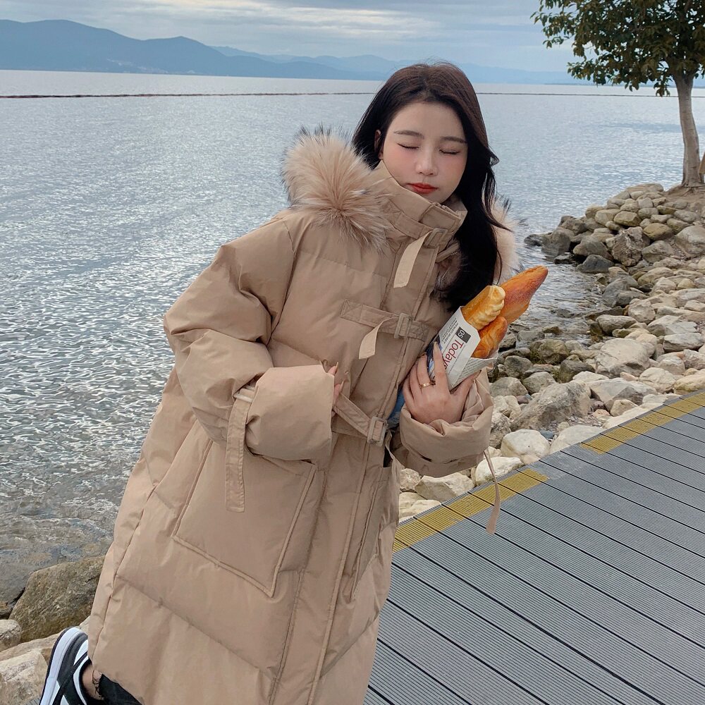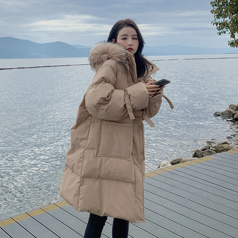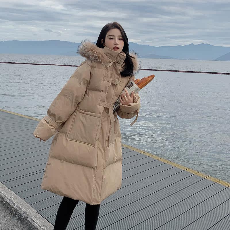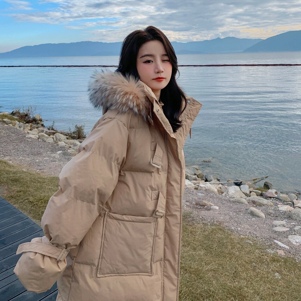 Tide, хаки длинный пуховик с пухом, зимняя куртка, набивка пером, средней длины, коллекция 2021, в корейском стиле