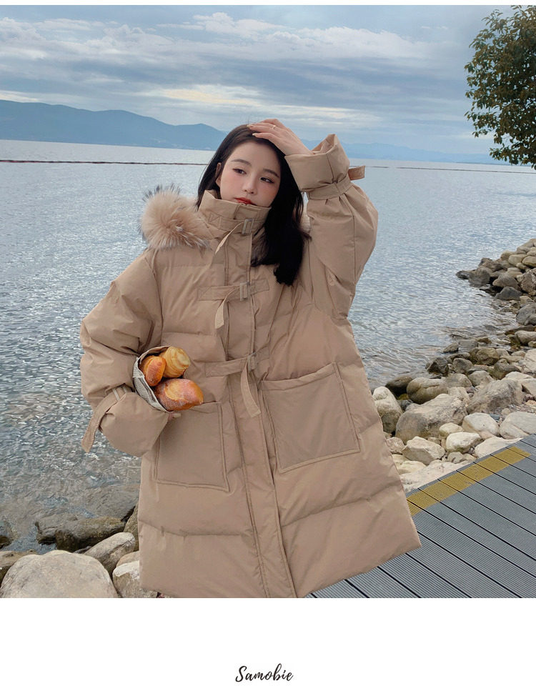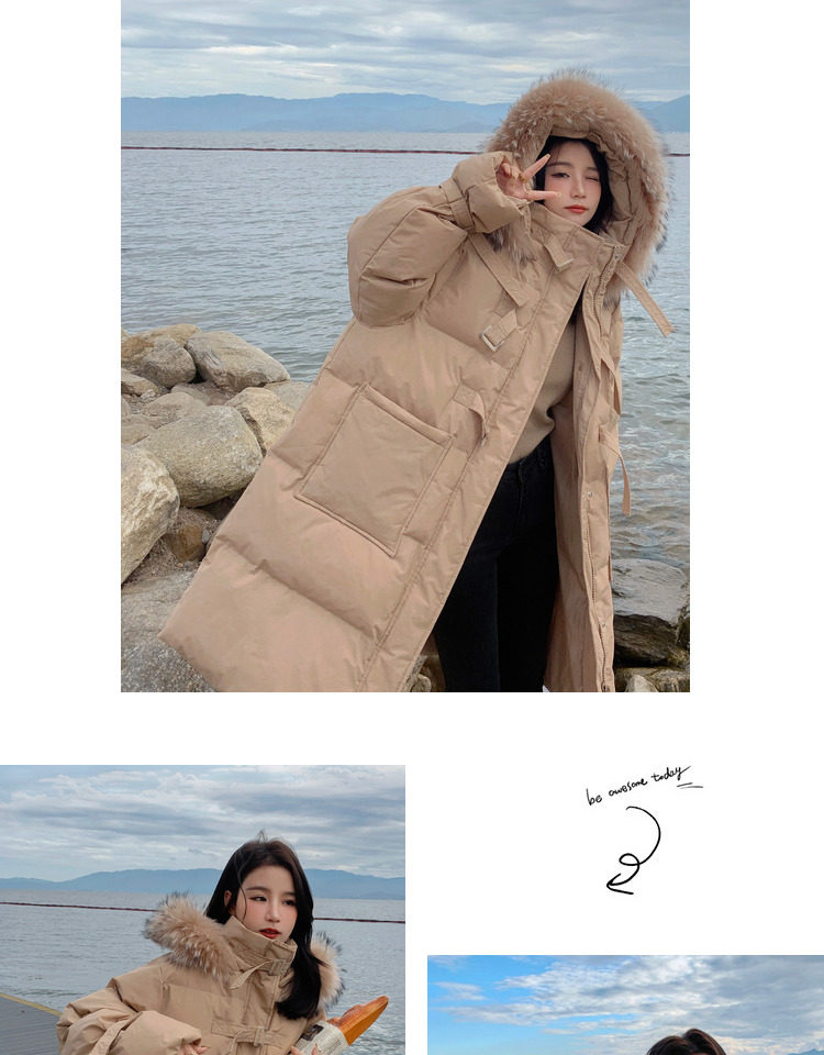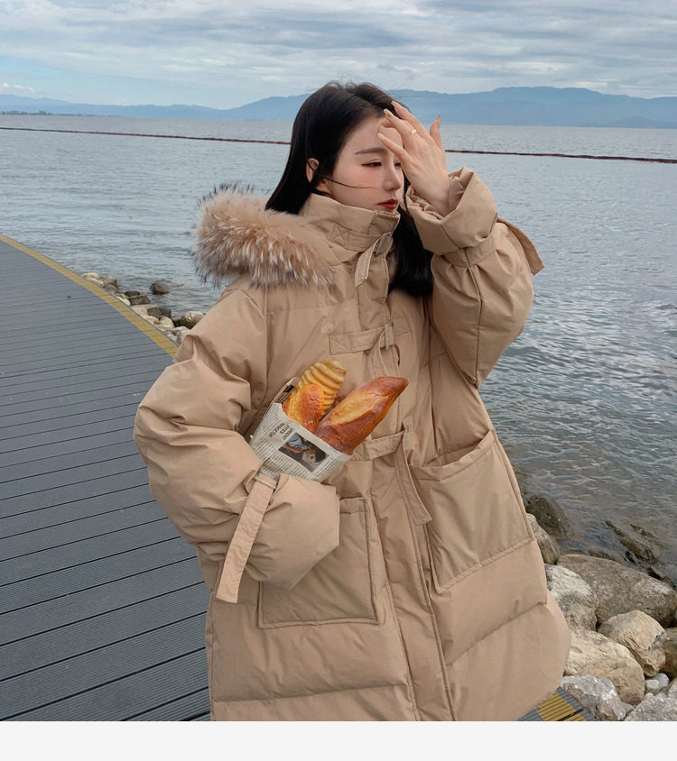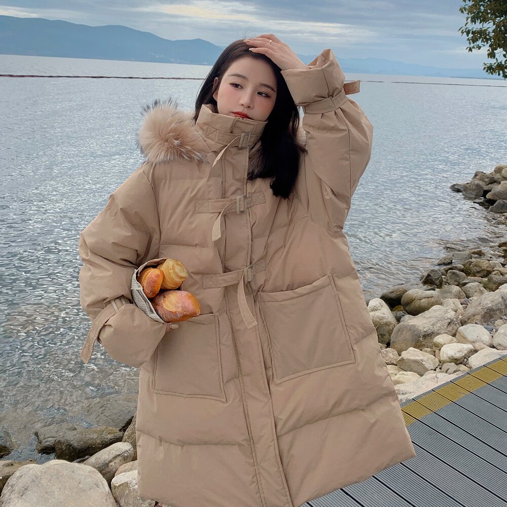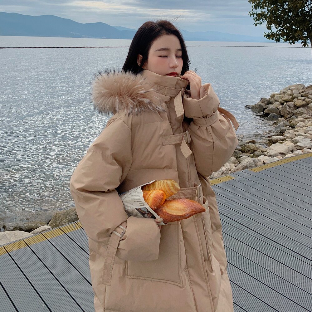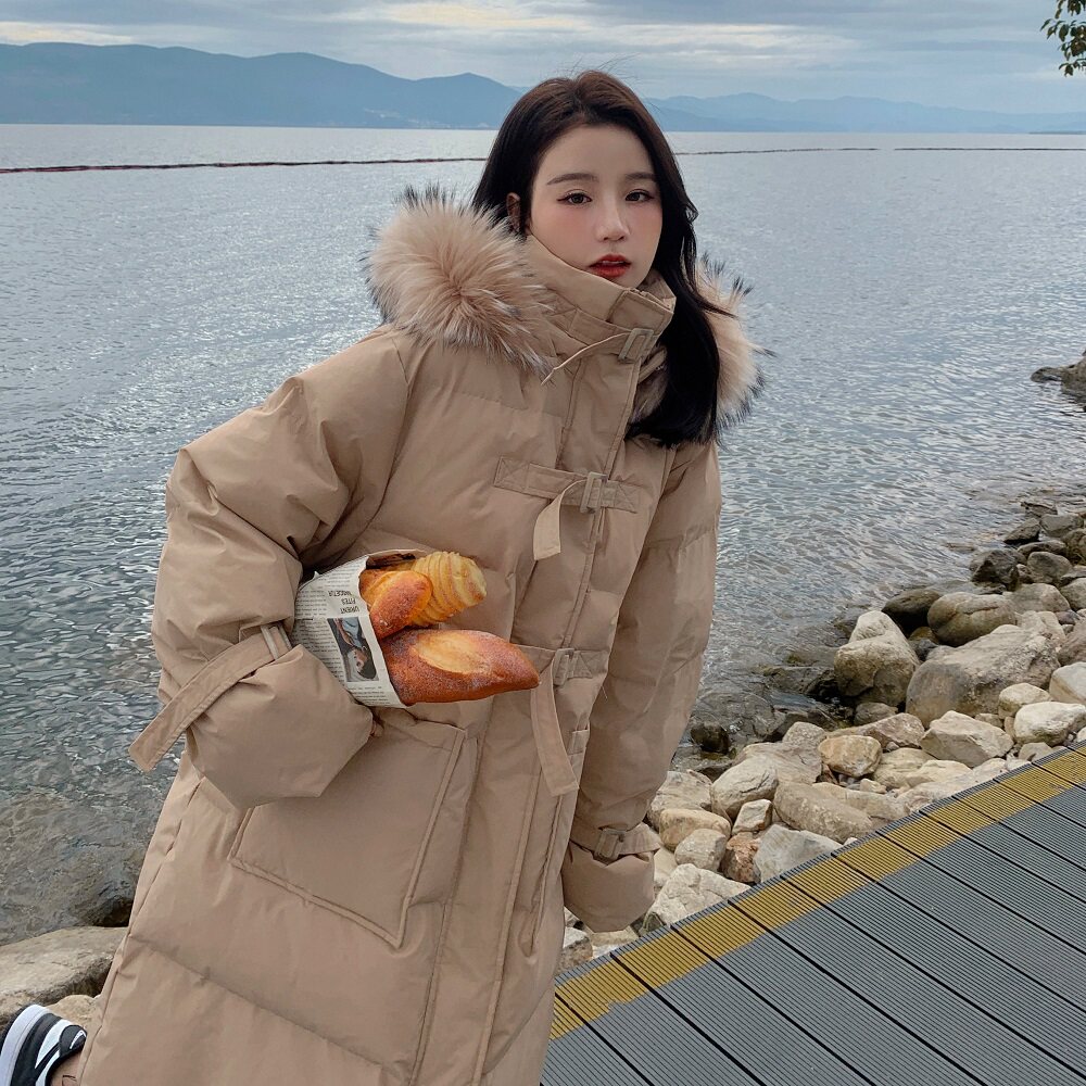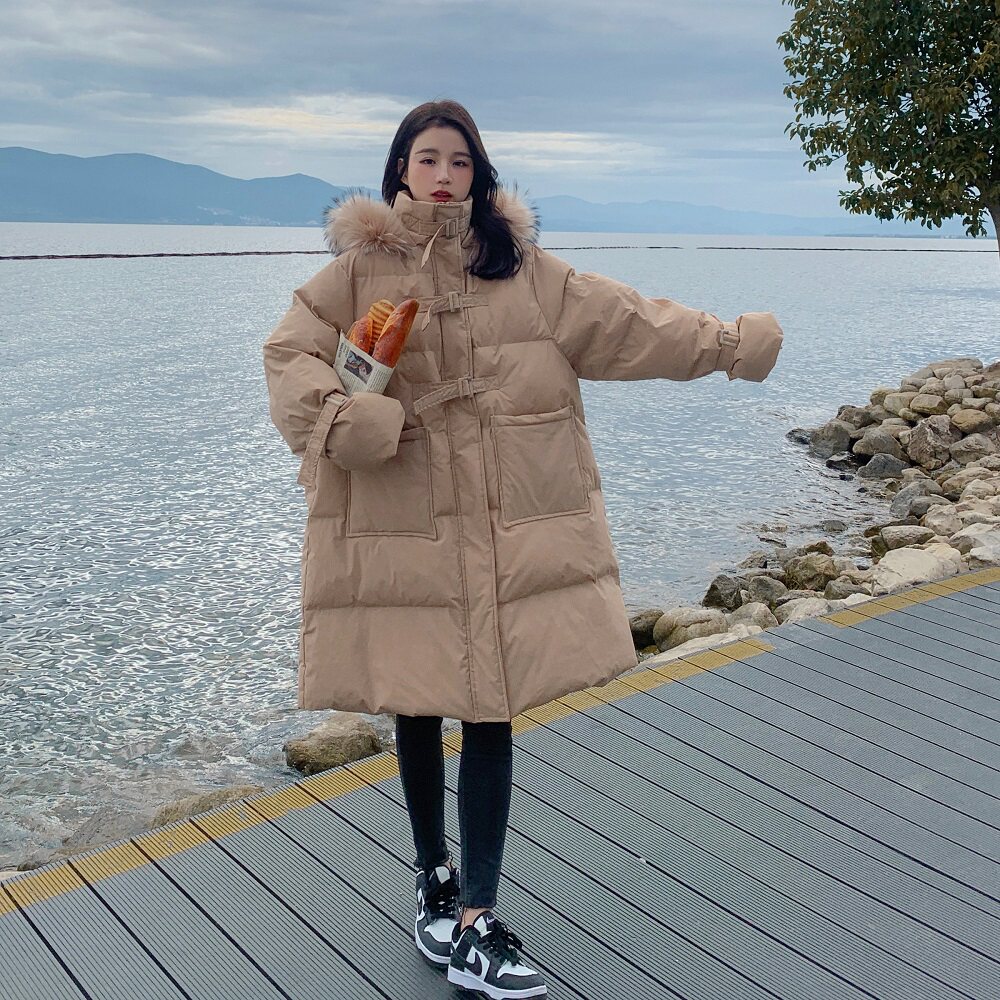 Tide, хаки длинный пуховик с пухом, зимняя куртка, набивка пером, средней длины, коллекция 2021, в корейском стиле