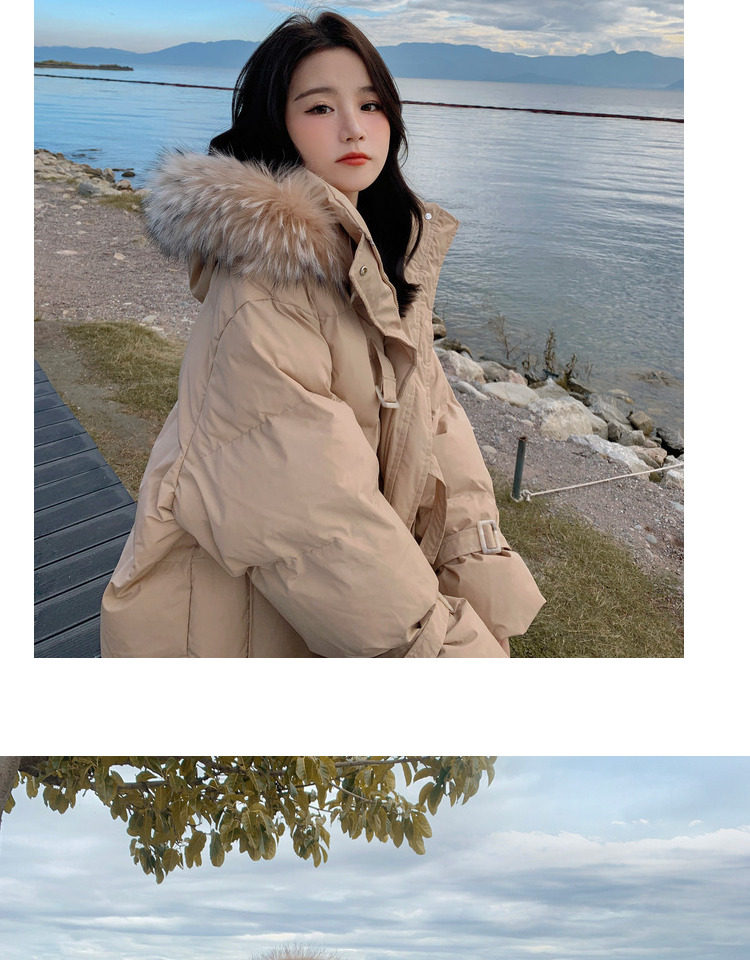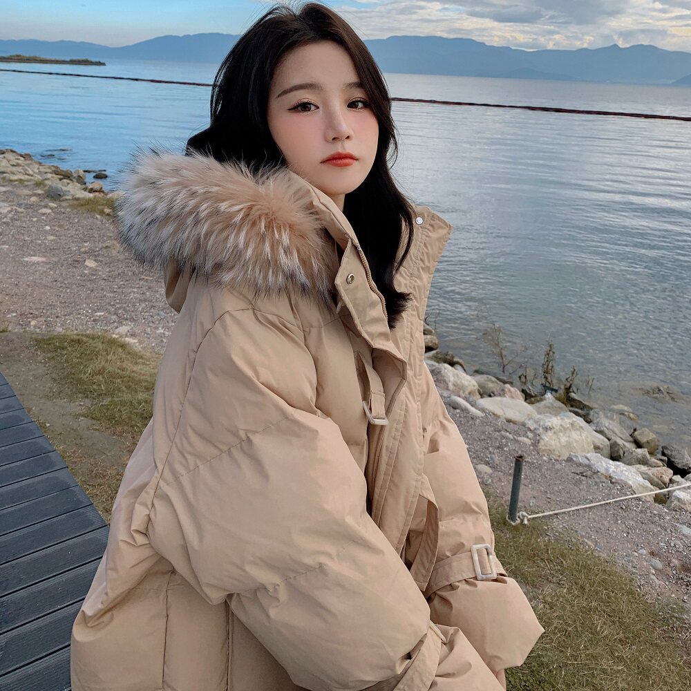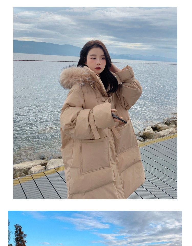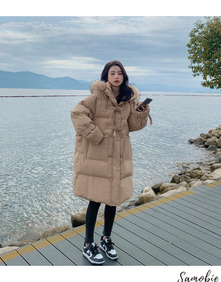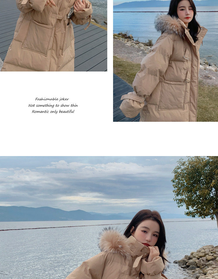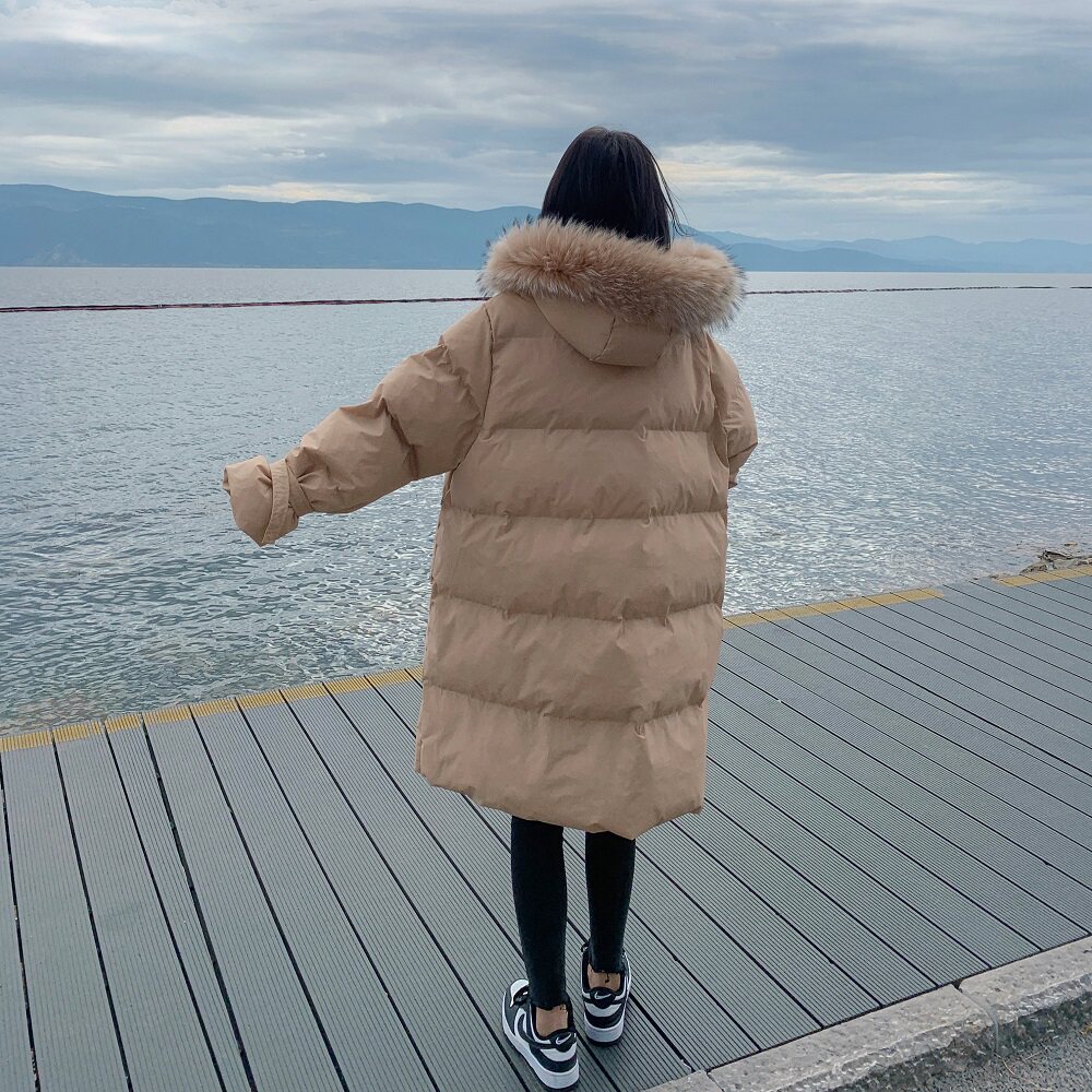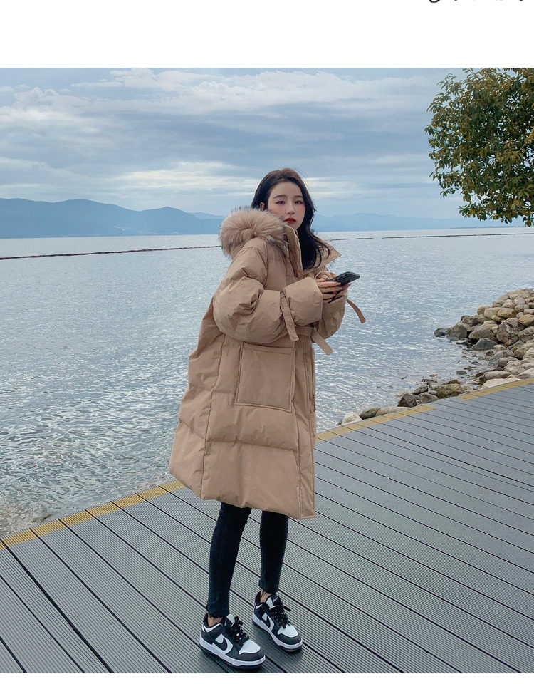 Tide, хаки длинный пуховик с пухом, зимняя куртка, набивка пером, средней длины, коллекция 2021, в корейском стиле