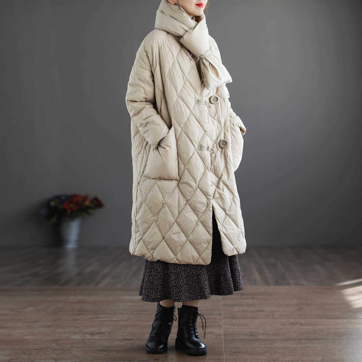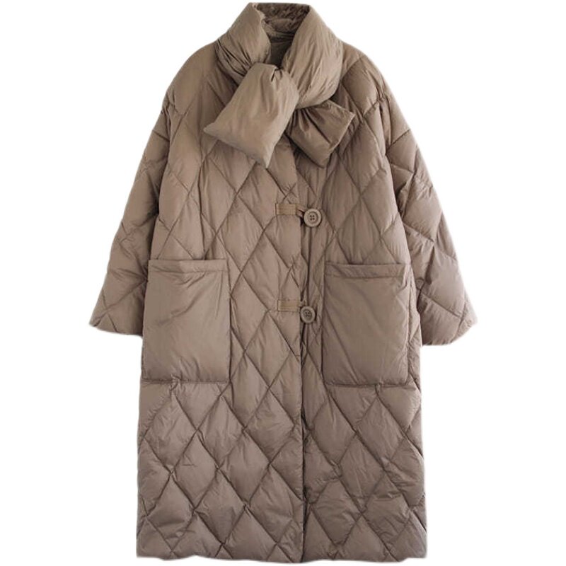 Длинный пуховик для отдыха с пухом, куртка, шарф, большой размер, средней длины