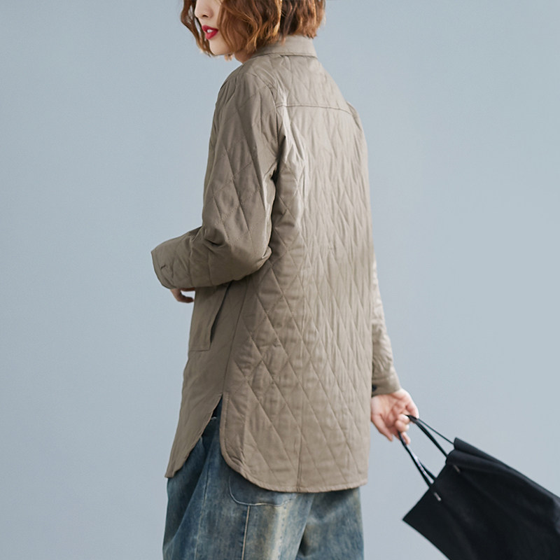 Стеганая демисезонная куртка для отдыха, удерживающий тепло пуховик с ромбовидным узором, увеличенная толщина, большой размер, свободный крой