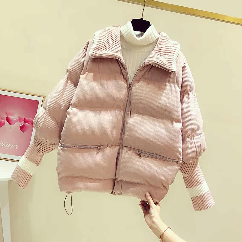 Короткий пуховик, вельветовая хлопковая куртка, 2022, в корейском стиле, оверсайз, увеличенная толщина