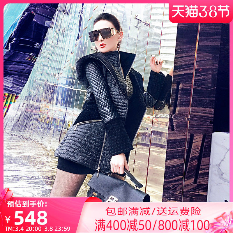 Полиуретановый пуховик с ромбовидным узором, комплект, длинный корсет с капюшоном, куртка, средней длины